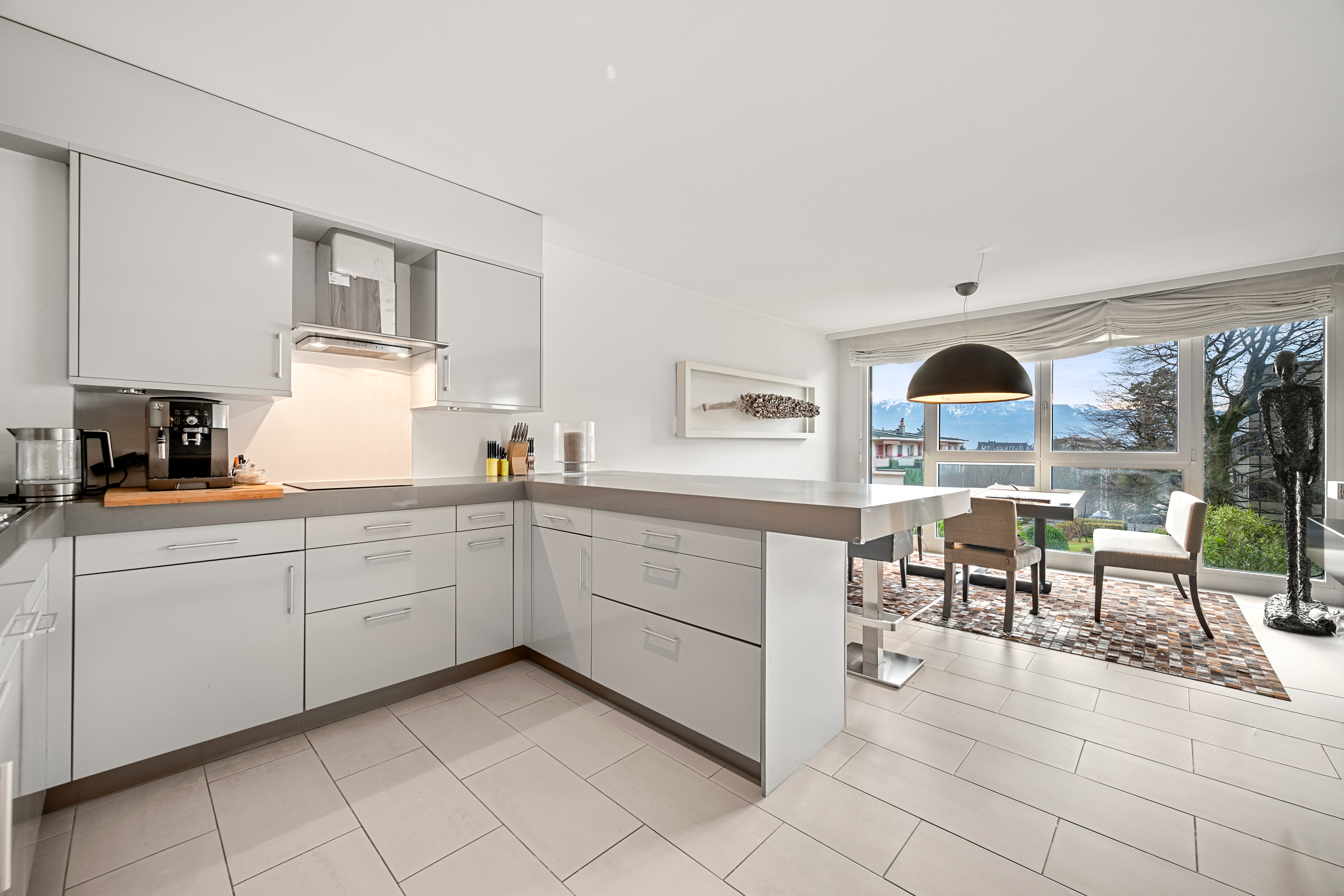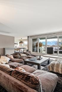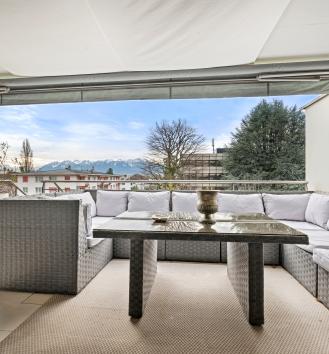 This beautiful turnkey duplex enjoys a privileged address in the heart of the highly sought-after commune of Pully. It's within walking distance of the charming center and all its amenities, the Pully-Sud train station, as well as the shores of the lake and the quays of Ouchy. The neighborhood is also appreciated for its immediate proximity to Lausanne and its excellent public transport network. The renowned Collège Champittet is just a 5-minute walk away. The 184 sqm apartment boasts contemporary, open and uncluttered architecture, with large windows and views of the Alps. Pleasant outdoor spaces extend this living space, with 32,5 sqm of balcony and terrace and a private garden of 110 sqm. The living space unfolds like a completely open plateau, offering fluid circulation between the different areas. It features a spacious living room extending onto the balcony, a fully-equipped kitchen with dining area, and a dining