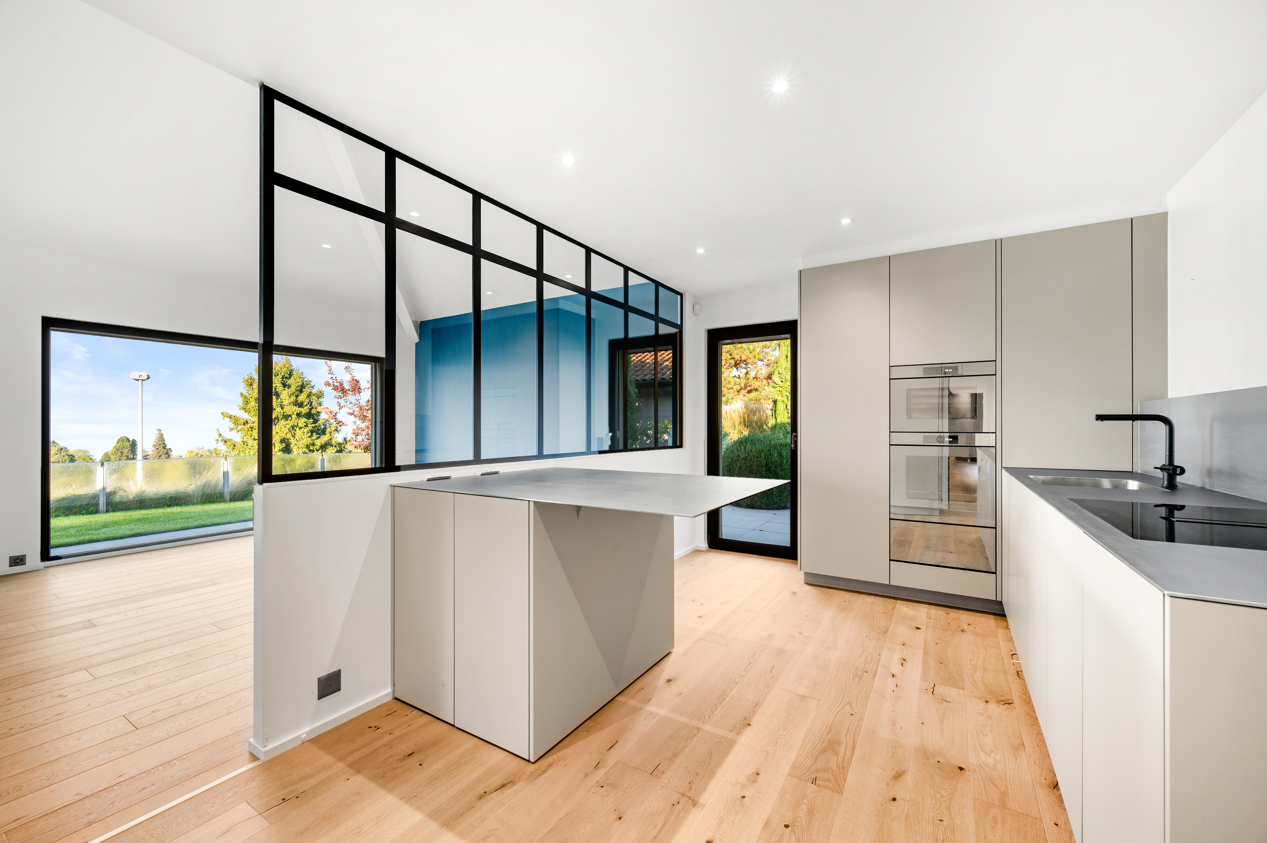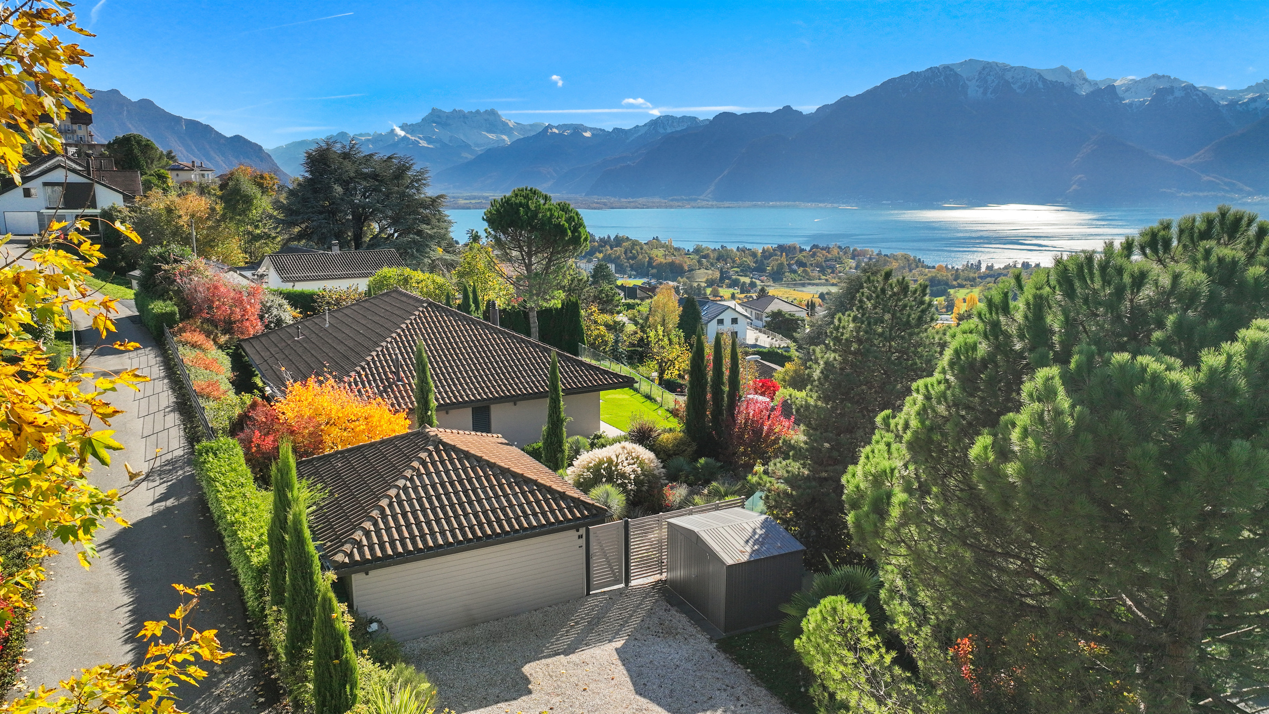 Located in a sought-after residential area, just a few minutes from the centre of the village of Blonay, this magnificent property offers breathtaking views of Lake Geneva and the Alps. Tastefully renovated in stages in 2018, 2022 and 2024, this house has been transformed using the highest quality materials. Built on one level, it charms with its generous proportions, high ceilings and exceptional brightness. It perfectly combines modernity, comfort and a warm atmosphere. Built on a 1,526 sqm plot, the property benefits from a superb landscaped garden in a Mediterranean style, designed with great care. Several terraces invite you to relax in complete privacy, in a spectacular setting. The main house offers 140 sqm of living space. The living area consists of a large lounge with fireplace, a dining room opening onto the garden and terrace, and a modern, fully equipped kitchen, complemented by a pantry and