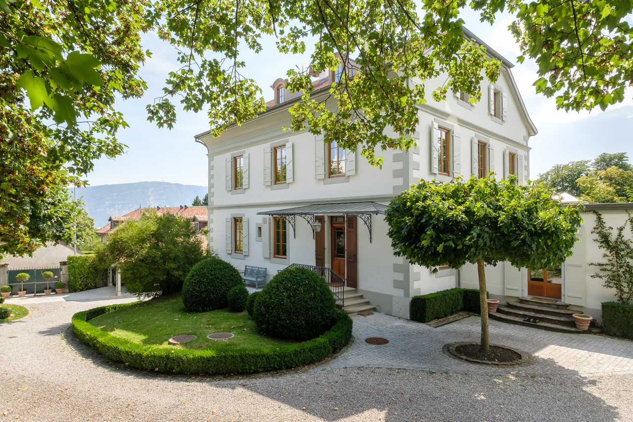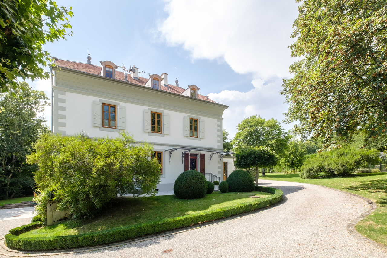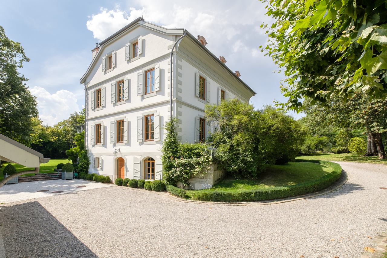 This elegant mansion is located in Vandoeuvres, in one of the most sought-after districts of the left bank, and built on a 6’000sqm plot, offering an exceptional park with secular trees, and sheltered from prying eyes. Built in the late 18th century, this grand residence of classical architecture offers approximately 800 sqm of living space, impressive volumes spread over 3 floors plus a basement. It successfully combines its authentic charm, - thanks to is exceptional ceiling heights, old wooden floors and elegant chimneys - with modern day comfort. Carefully designed and renovated in 2010, this mansion is equipped with high-end equipment and noble materials. The old stable were converted into an annexe accommodation and a studio for staff quarters, of approximately 250 m2 useful surface. The exteriors and the garden are perfectly maintained, and accommodates a large terrace, a superb heated swimming pool and