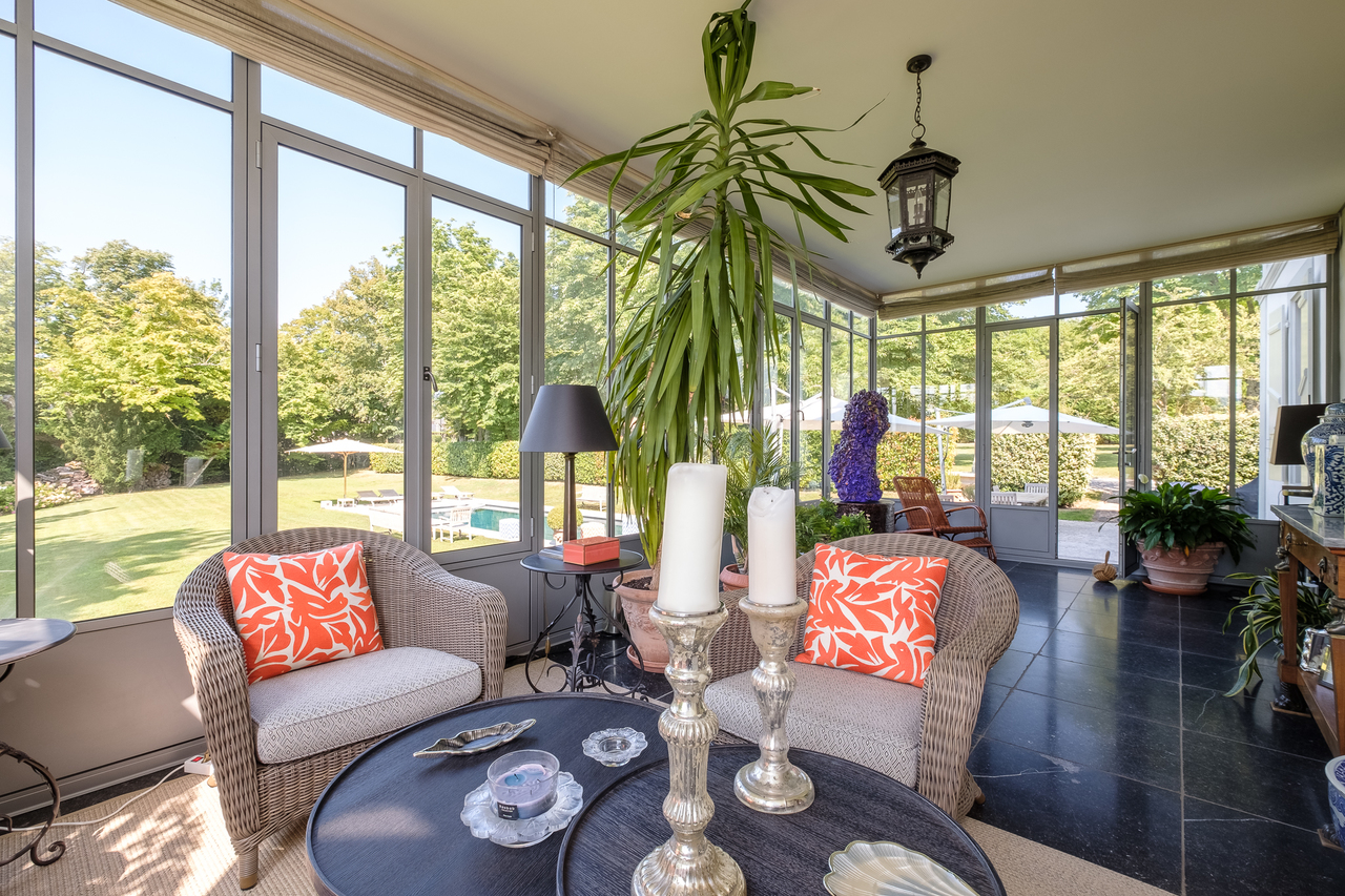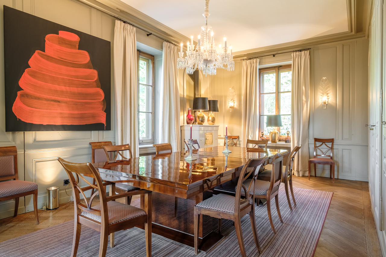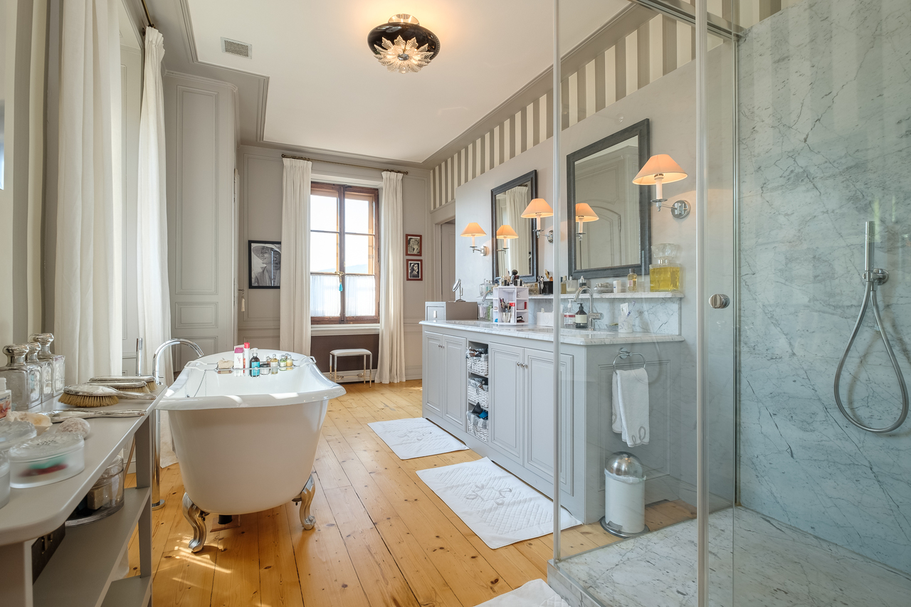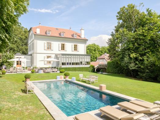 This elegant mansion is located in Vandoeuvres, in one of the most sought-after districts of the left bank, and built on a 6’000sqm plot, offering an exceptional park with secular trees, and sheltered from prying eyes. Built in the late 18th century, this grand residence of classical architecture offers approximately 800 sqm of living space, impressive volumes spread over 3 floors plus a basement. It successfully combines its authentic charm, - thanks to is exceptional ceiling heights, old wooden floors and elegant chimneys - with modern day comfort. Carefully designed and renovated in 2010, this mansion is equipped with high-end equipment and noble materials. The old stable were converted into an annexe accommodation and a studio for staff quarters, of approximately 250 m2 useful surface. The exteriors and the garden are perfectly maintained, and accommodates a large terrace, a superb heated swimming pool and