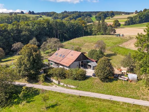 Located 15 minutes from Lausanne, this farmhouse built in 1792 was completely renovated between 2014 and 2016 using high-quality materials. Facing south, it enjoys beautiful light throughout the day. Its rural setting, spacious rooms, and facilities suited to family life or horse riding make it a rare opportunity in the Lausanne area: a preserved historic setting combined with modern comforts and a real quality of life, close to amenities. Its energy performance, certified by a CECB category B rating, is also a notable asset for this type of property. The property is part of a two-lot co-ownership and has a large private plot of just over one hectare. The second lot, also residential, is independent of the farm. Organized on three levels, the main dwelling, with approximately 260m² of living space, offers a comfortable and functional living area with beautiful open spaces overlooking the garden and surrounding