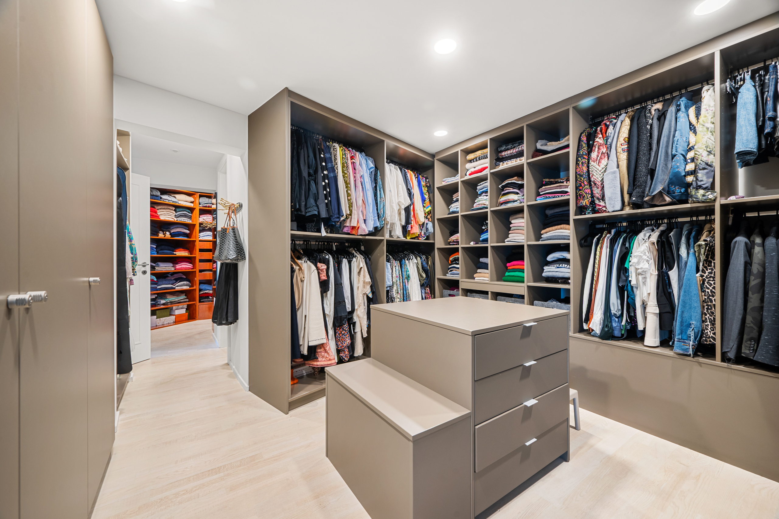 The master suite includes a spacious double walk-in dressing room, a large en-suite bathroom and direct access to the terrace with views.