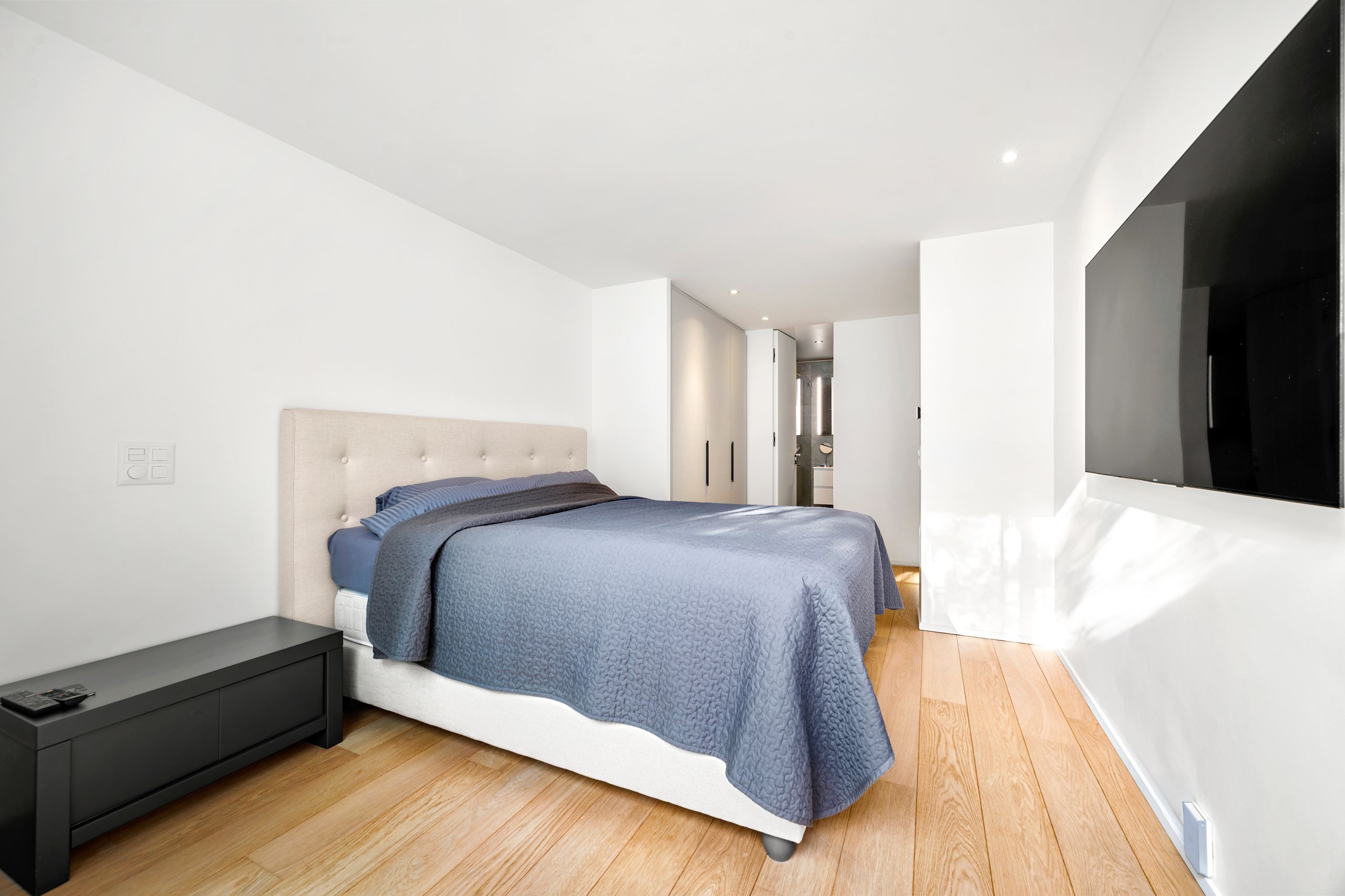 This level also includes two bedrooms, one with an en-suite bathroom benefiting from natural light via an English patio, and an additional shower room.