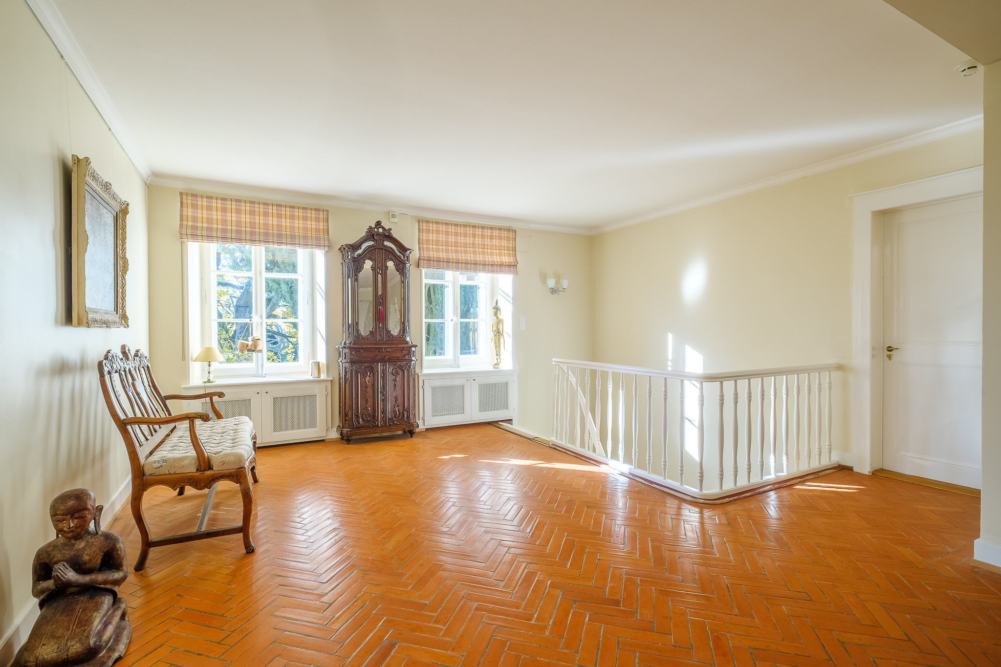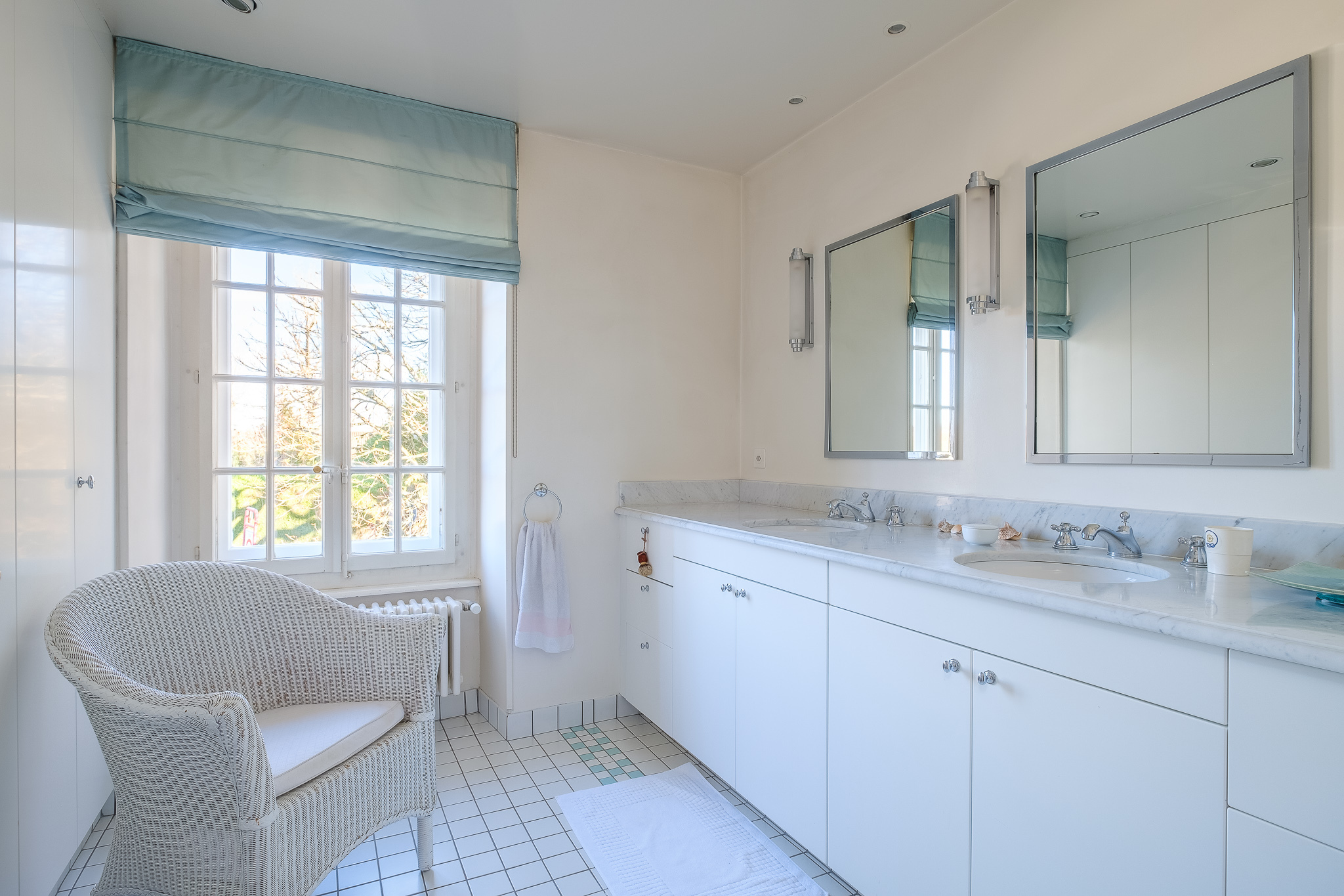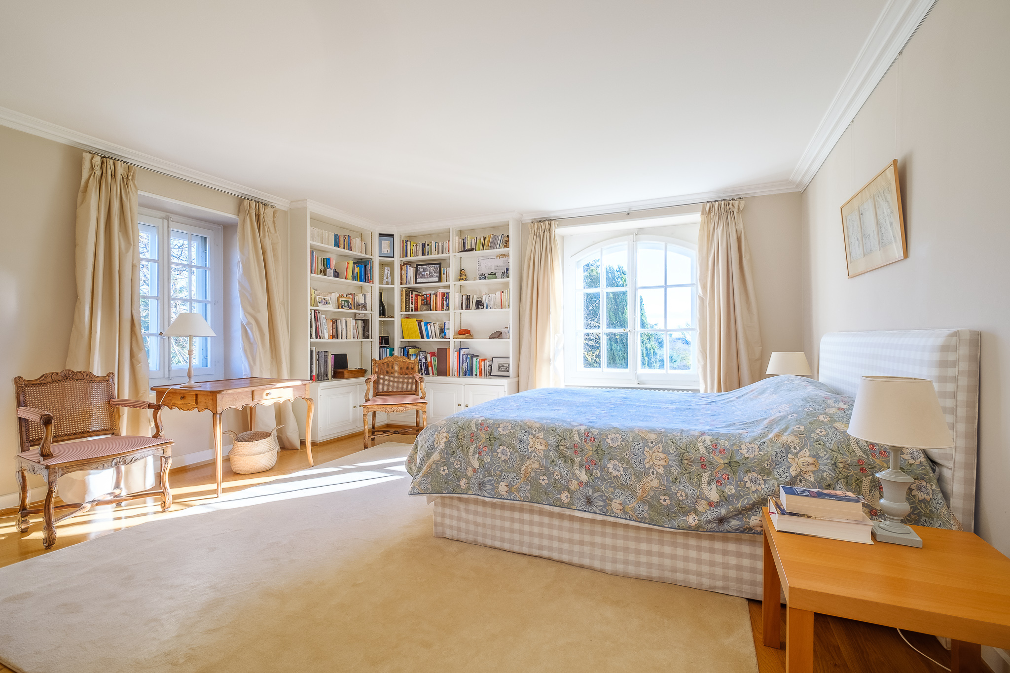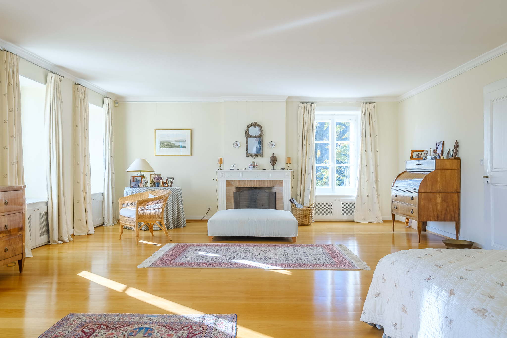 This magnificent manor house, "La Paisible", is nestled in the heart of a big garden of over 16'000 sqm. It was once a humble farmhouse of the castle, transformed into a sumptuous bourgeois residence in the end of the 19th century, becoming a testament to over two centuries of timeless elegance. Built in 1733 and meticulously restored in 2001, this home greets you with an elegant entrance that leads into a luminous living room, gracefully extending towards the garden. It offers a spacious kitchen and an inviting dining room. The property comprises 21 rooms, of which 12 are generously-sized bedrooms, among them a master bedroom of over 55 sqm with an en-suite bathroom and dressing room. Additionally, there are 8 bathrooms ensuring comfort for all residents. The spacious attic stands ready for your imaginative transformation. The three floors of the house are served by a large elevator. This splendid residence offers a charming duplex for guests or staff that harmoniously complements the entire estate. Two garages and a vast outdoor parking contribute to the completeness of this exceptional property. The crowning jewel