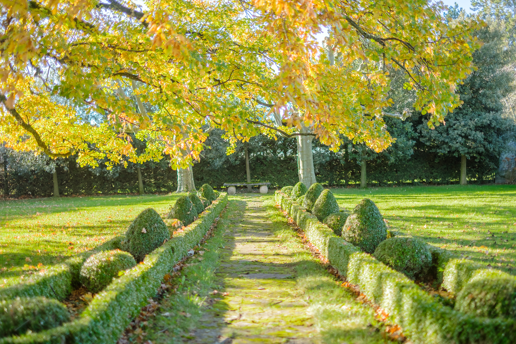 The expansive garden of the property is a symphony of nature, a place where time appears to stand still. Centuries-old trees, silent custodians of the past, stand with undeniable dignity, enhancing the tranquility of this scene.