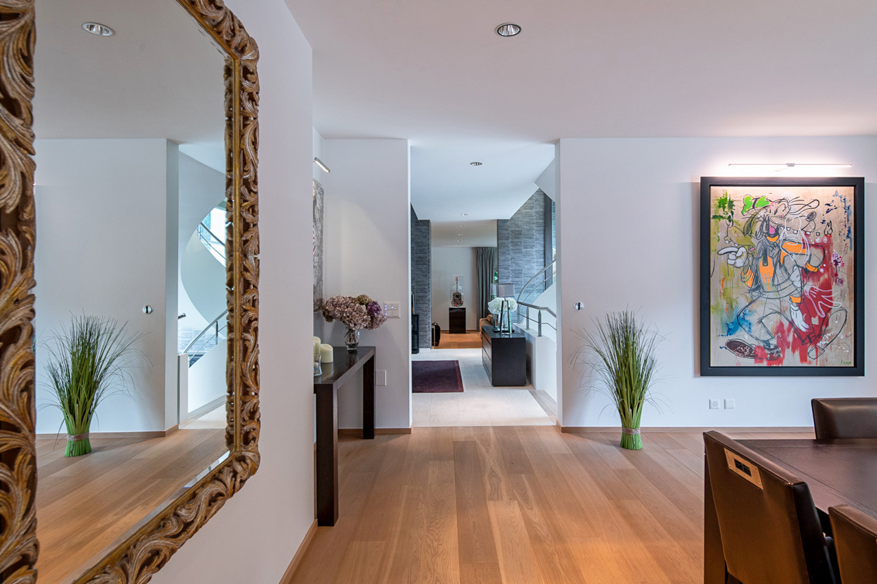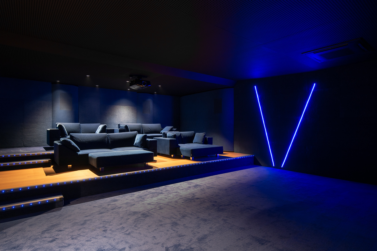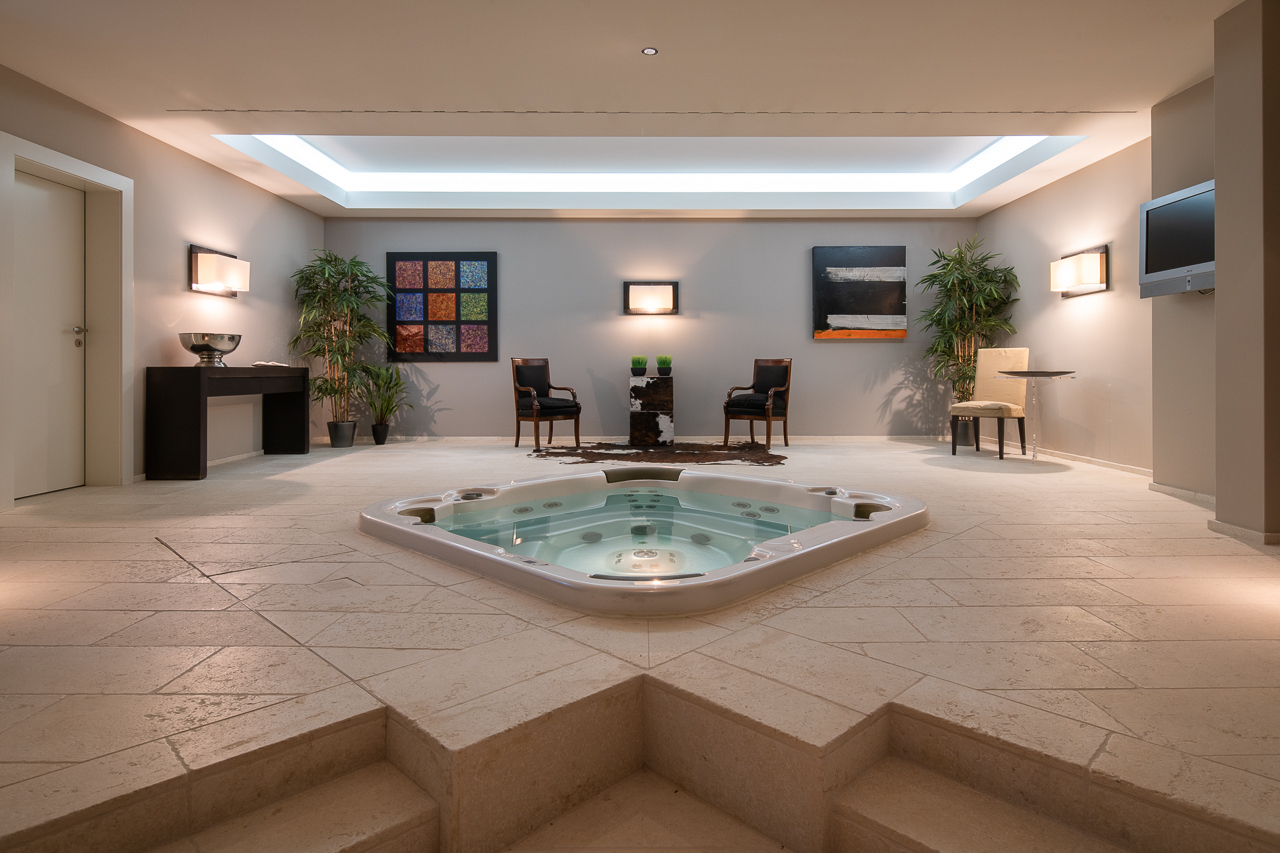 superb, finished basement bathed in natural light. It includes a wine cellar, a wellness area with a spa, a home cinema, a fitness room, a bedroom with ensuite bathroom and an independent studio for guests or staff.
