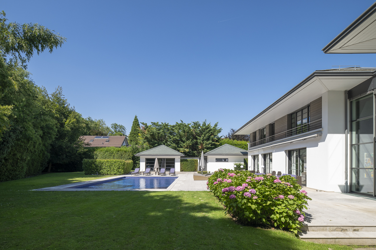 Built on a 2,743 sqm plot, fully fenced and secured, the property boasts a landscaped garden that guarantees complete privacy. It features a superb, heated swimming pool with a pool house, a jacuzzi, and extensive terraces.