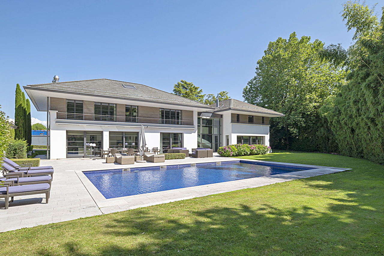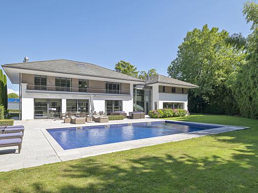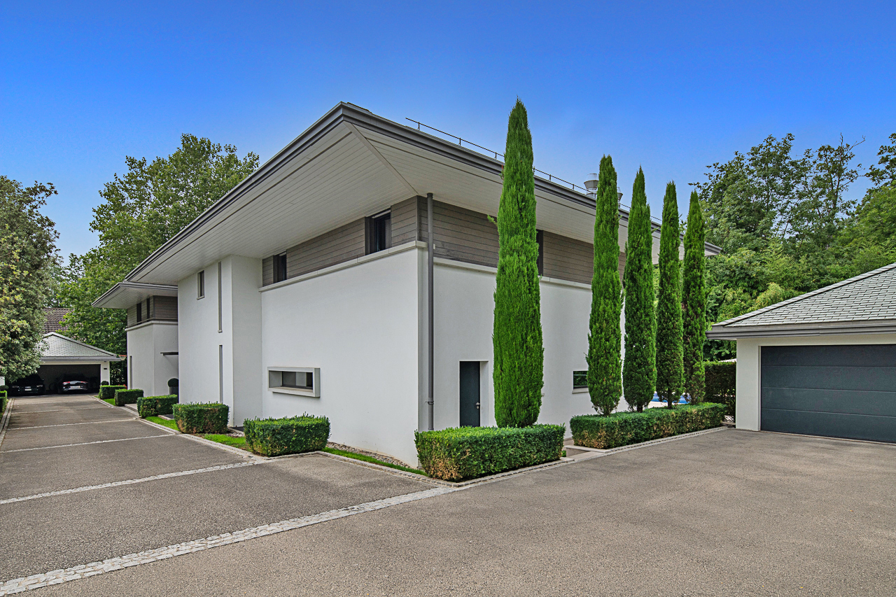 This superb villa is nestled in a residential area of Commugny, in the heart of the prestigious Terre Sainte region. Ideal for a family, it enjoys a lush and peaceful setting, just a stone's throw from the Châtaigneraie campus, close to Lake Geneva, and just 15 minutes from Geneva International Airport. The property was designed for a family and is characterized by its contemporary style, high-end amenities, superb space, and abundant natural light. Its garden provides absolute privacy and complete privacy. The ground floor houses the reception rooms and living areas, bathed in light and opening onto the garden. Upstairs, the sleeping area includes two bedrooms with en-suite bathrooms, as well as a magnificent master suite with a private office, a dressing room, and two bathrooms. The attic space can easily be converted into an additional suite if needed. The house is fully excavated and features a