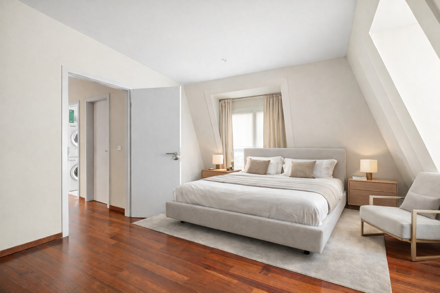 a storage room. It has the facilities to accommodate a kitchen. Two parking spaces in the residence's indoor garage are available at an additional cost (90 000 CHF) The first photos show the apartment in a modern style. The last photos show the apartment in its current style.