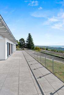 Nestled in the peaceful commune of Arzier-le-Muids, in the sought-after district of Nyon, this contemporary villa built in 2021 embodies a subtle balance between elegance and comfortable living. Its privileged location, close to the train station, offers both the serenity of a peaceful environment and the practicality of easy access to major roads. With its resolutely contemporary design, the property is seductive with its sober, timeless lines and fine finishes. With around 340 sqm of living space (430 sqm of usable space), it offers 8.5 generous rooms, 5 en-suite bedrooms including the master suite, and an office. These rooms open onto a 180° panoramic view of Lake Geneva and the Alps. The perfectly appointed lower level offers additional comfortable living spaces: a vast multi-purpose room that can be dedicated to fitness, a wine cellar, a laundry room and numerous storage areas designed with the same care. Built