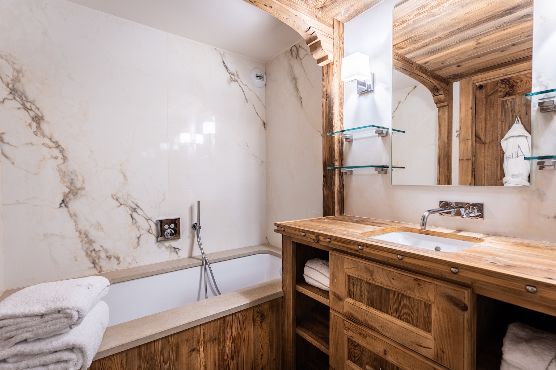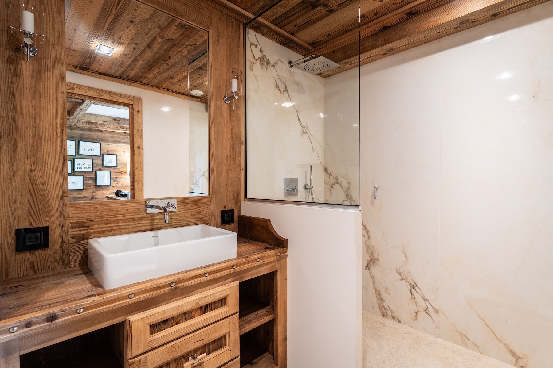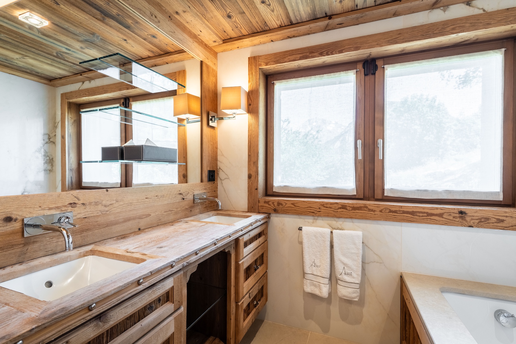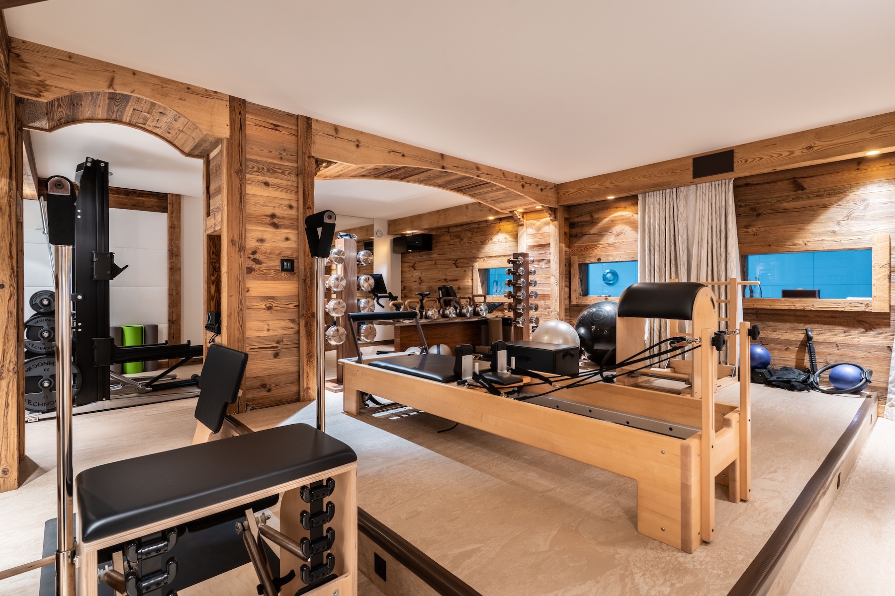 The valley level, with a surface area of 134 sq m, features a wellness area and a swimming pool with mountain views.
