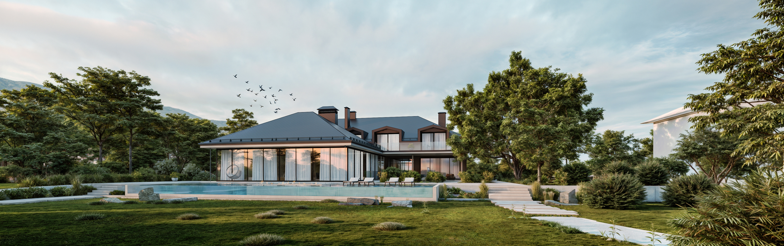 Elle disposera de très beaux espaces de réception avec de grandes baies vitrées accédant sur la terrasse et la piscine.