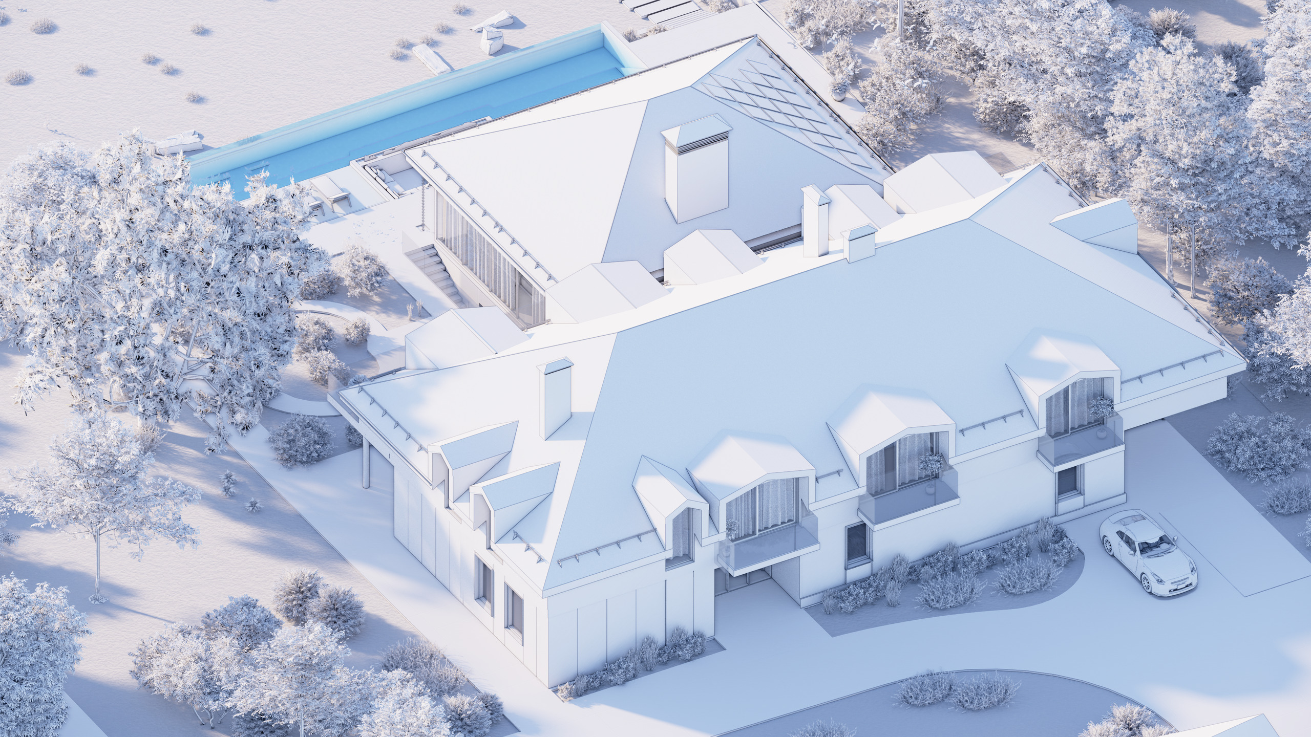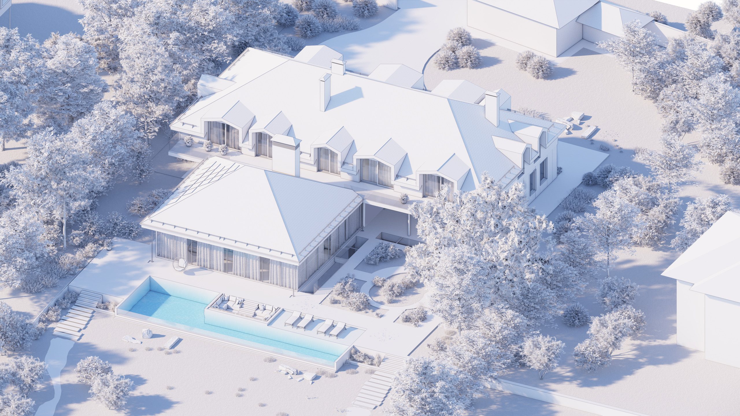 Le rez inférieur sera dédié à la zone de détente et spa avec une piscine intérieure, une salle de douche, un bar. L'accès permettra de profiter pleinement du jardin et de l'accès au lac.