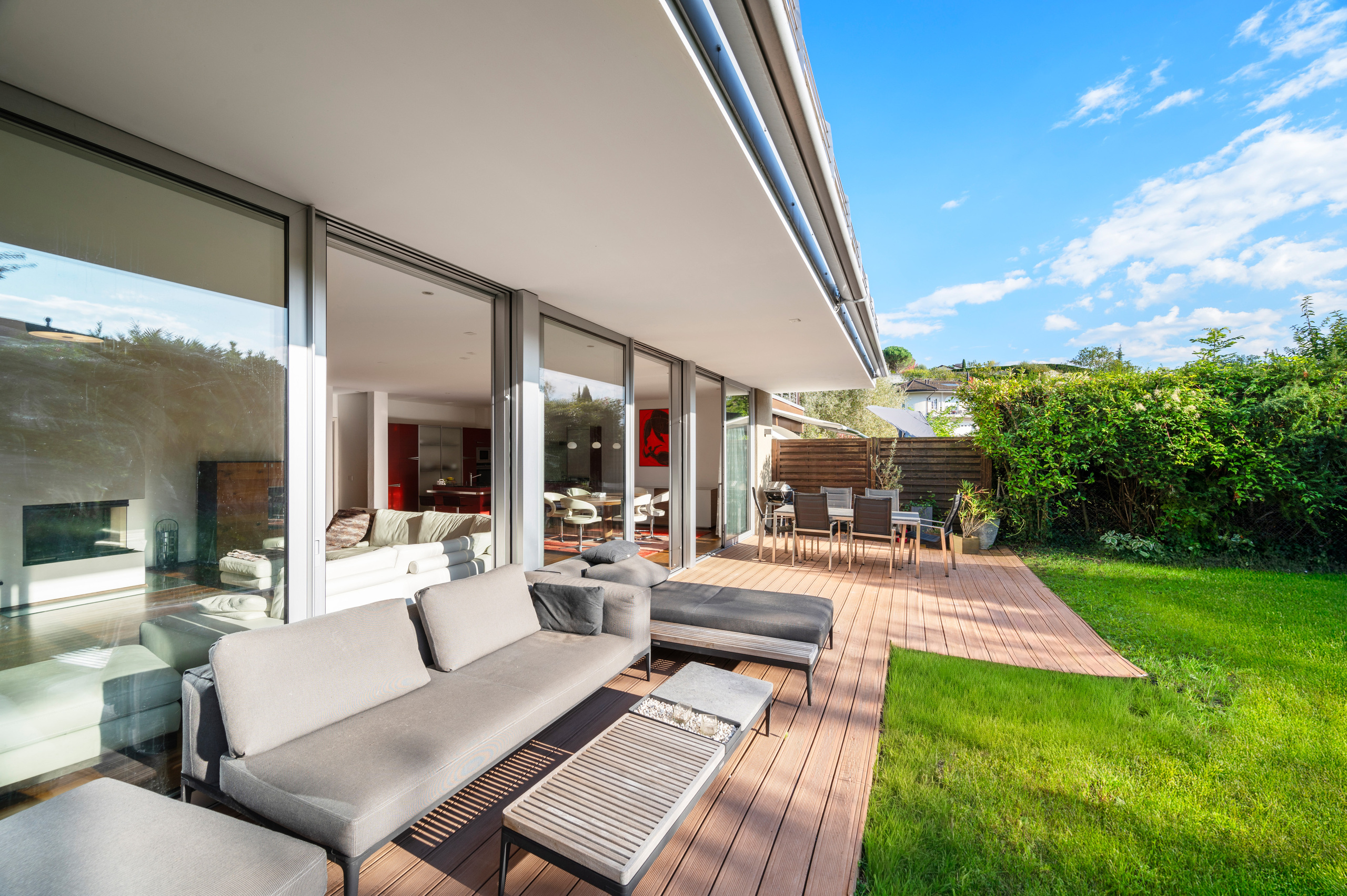 Un vaste séjour lumineux avec cheminée contemporaine