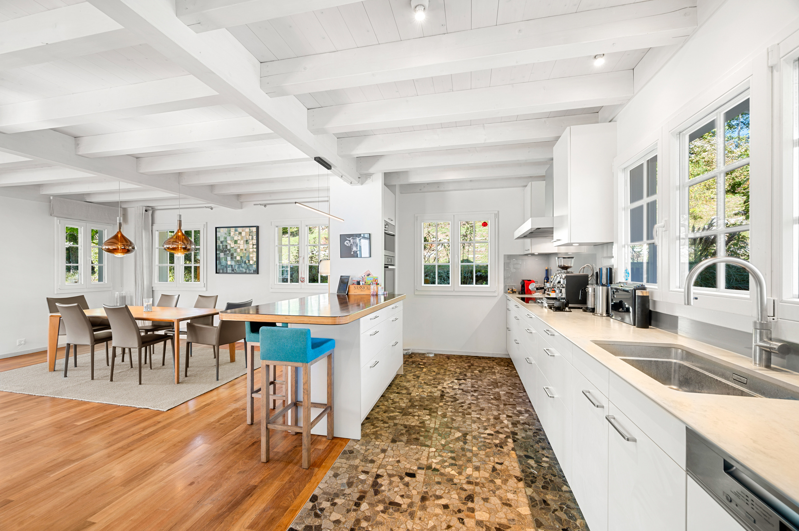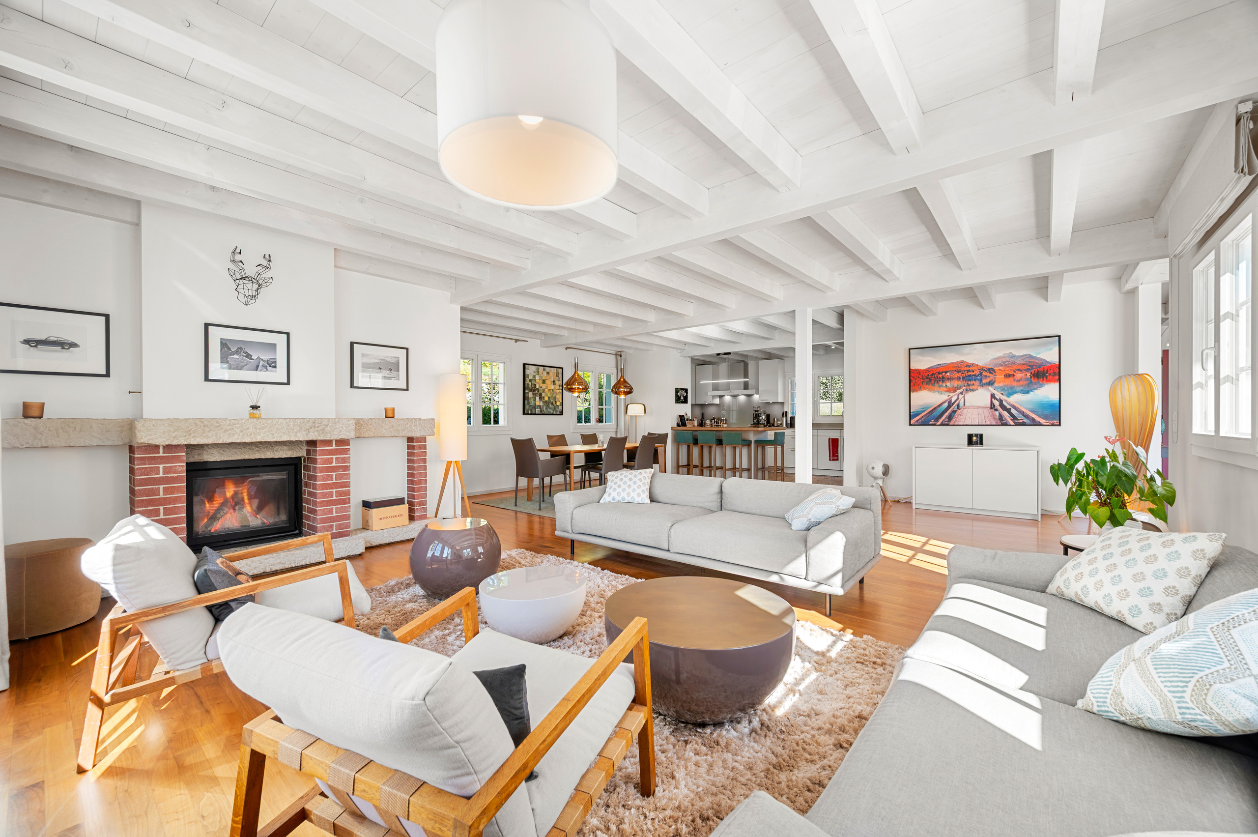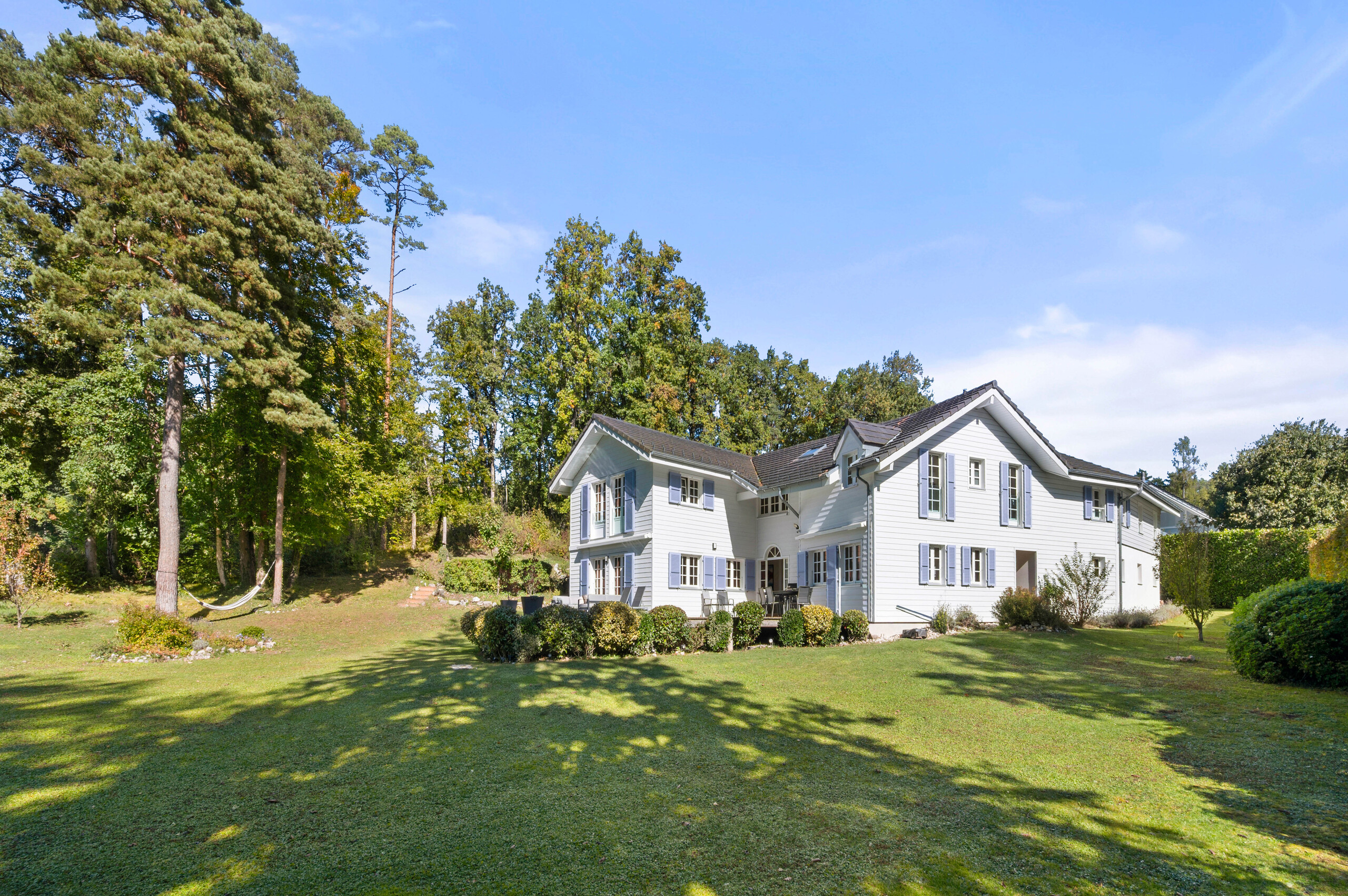 Édifiée sur une magnifique parcelle boisée de plus de 2'900 m², cette villa jouit d’une intimité rare et d’un emplacement paisible, à l’abri de toute nuisance, au bout d’un chemin sans issue. Sa situation est idéale : à proximité immédiate de la charmante ville de Nyon, des écoles publiques, privées et internationales, de l’aéroport de Genève, ainsi que de toutes les commodités et axes de transport. Inspirée de l’architecture nord-américaine, cette splendide villa d’environ 400 m² sur deux niveaux bénéficie d’un environnement privilégié. Nichée au cœur d’un véritable écrin de verdure, à l’abri de toute agitation, elle offre une véritable parenthèse de déconnexion. Le rez-de-chaussée accueille un vaste hall d’entrée avec vestiaire et toilettes visiteurs, un spacieux séjour agrémenté d’une cheminée, une salle à manger, une cuisine équipée haut de gamme avec sellier ainsi qu’un salon TV. La terrasse, dotée d’une piscine, invite à la détente en