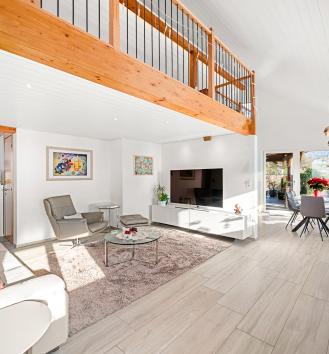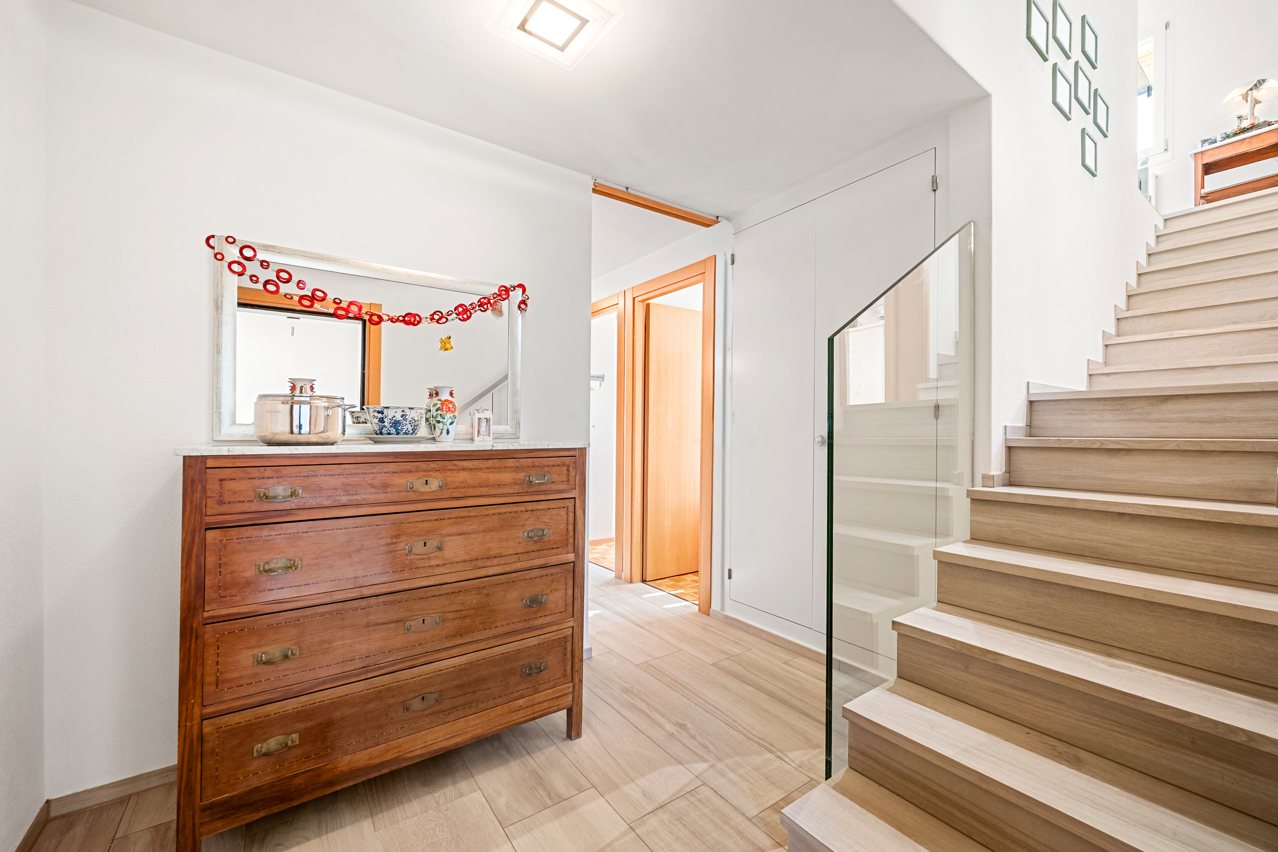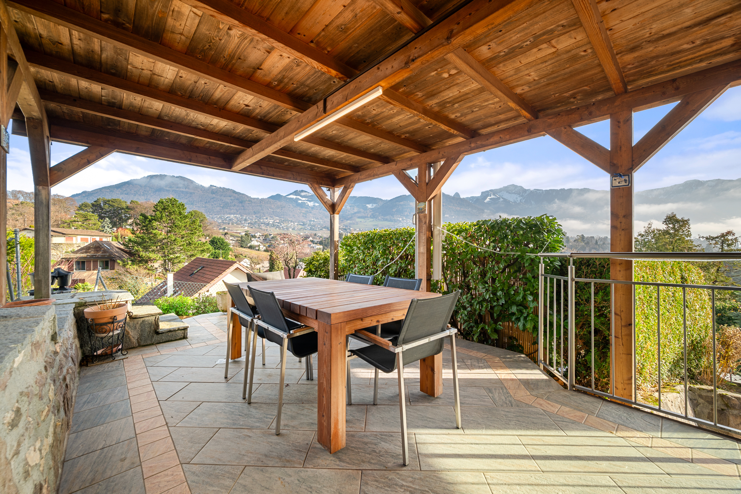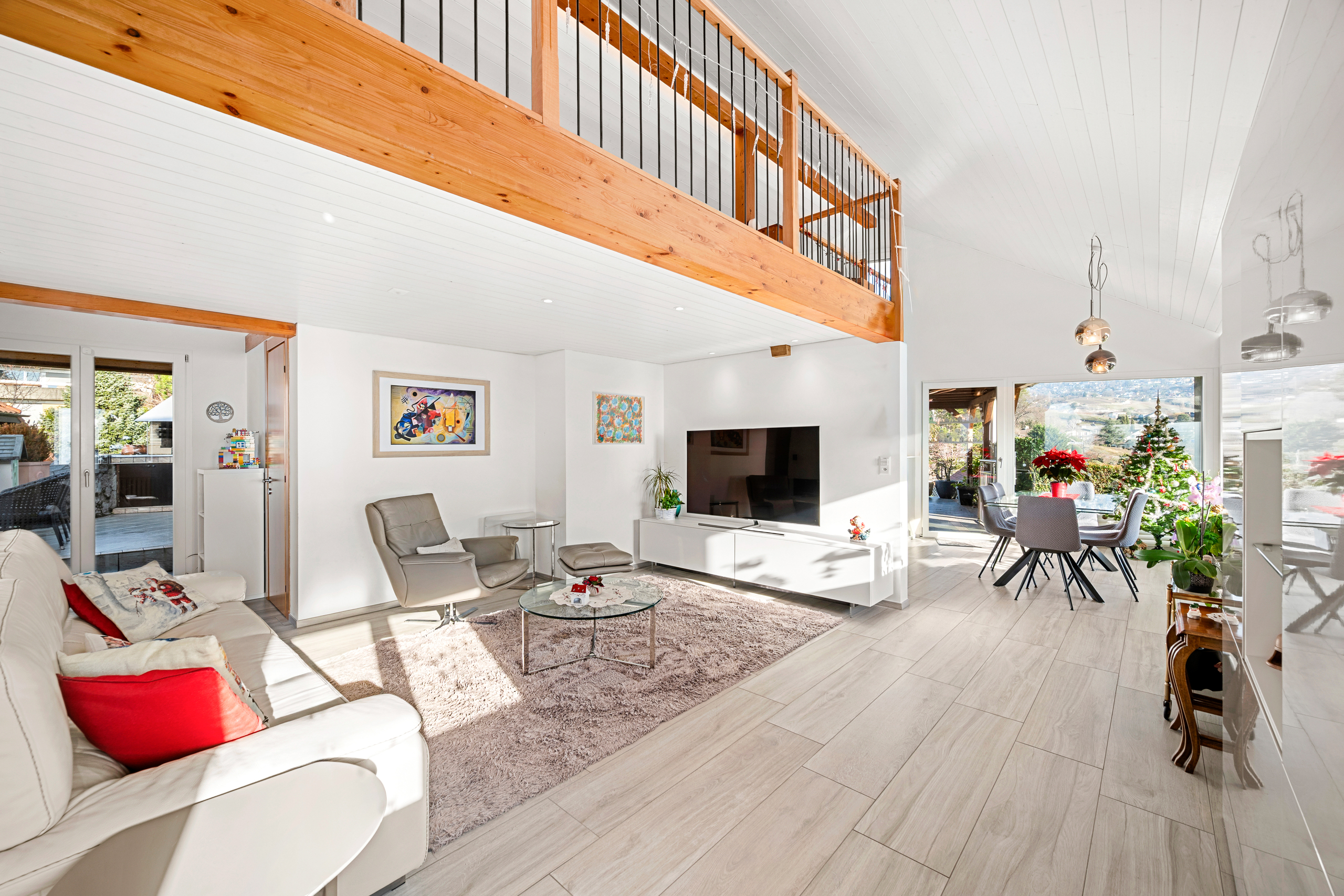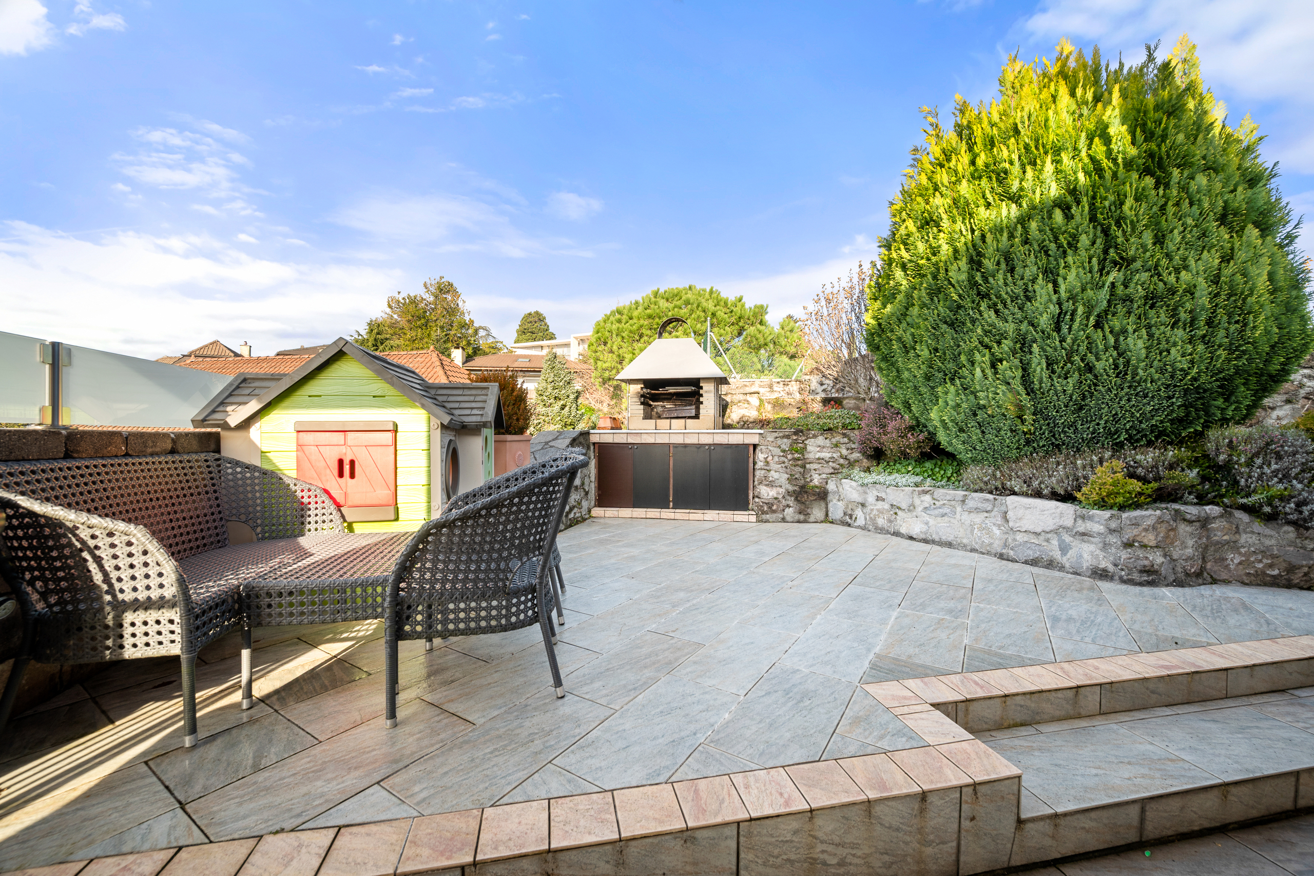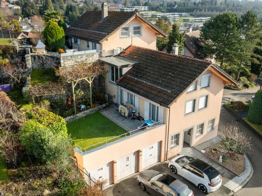 This superb property, built in 1997, is located in one of the quietest and most residential areas of La Tour-de-Peilz. Offering breathtaking panoramic views of Lake Geneva and the Alps, it enjoys ideal sunshine throughout the day thanks to its numerous perfectly oriented terraces. Set on a well-maintained 990 sqm plot, the house enjoys a privileged location, close to international schools, shops and transport links, making it an ideal address for a family seeking comfort and convenience. Its intelligent and harmonious architecture has been designed to offer two separate flats, which can easily be combined to create a large multi-family home. With 220 sqm of living space and 260 sqm of usable space, the rooms are distinguished by their brightness, generosity and warm atmosphere. The first flat, with a surface area of approximately 140 sqm, offers four bedrooms, two bathrooms, beautiful reception rooms opening onto a contemporary