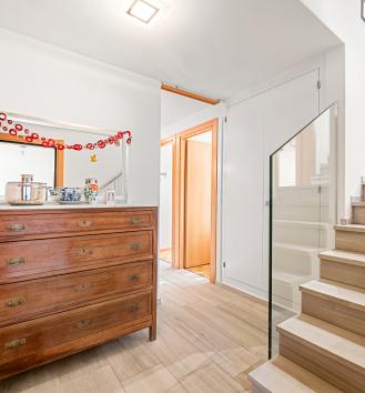 kitchen, with access to two terraces offering splendid views. A mezzanine completes this space, providing an ideal location for an office or games room. The second flat, with a separate entrance, covers approximately 80 sqm and is a duplex. It comprises two bedrooms, a bathroom, a study and a living room with an kitchen, all extending onto a very large terrace where you can fully enjoy the exceptional surroundings. The communal areas on the lower ground floor include direct access to the garage, which can accommodate three cars, a workshop, a laundry room, two cellars, a wine cellar, a shower room with WC and a utility room. Several outdoor parking spaces complete this rare property, offering absolute comfort in a highly sought-after area.