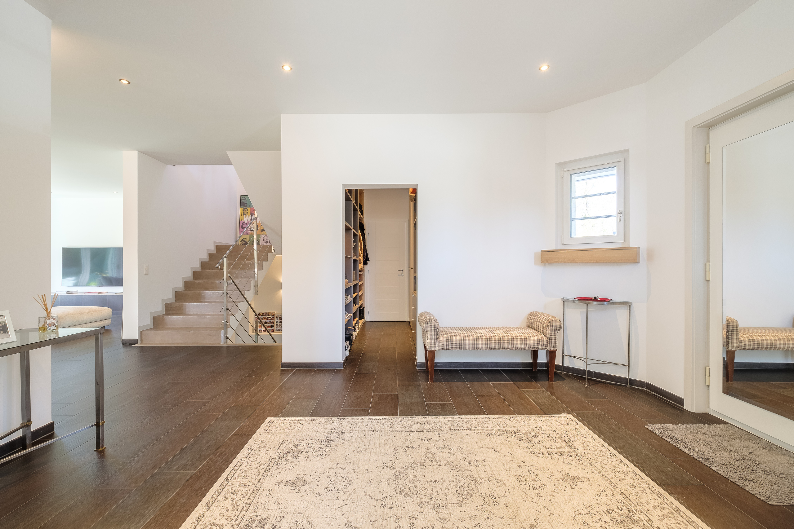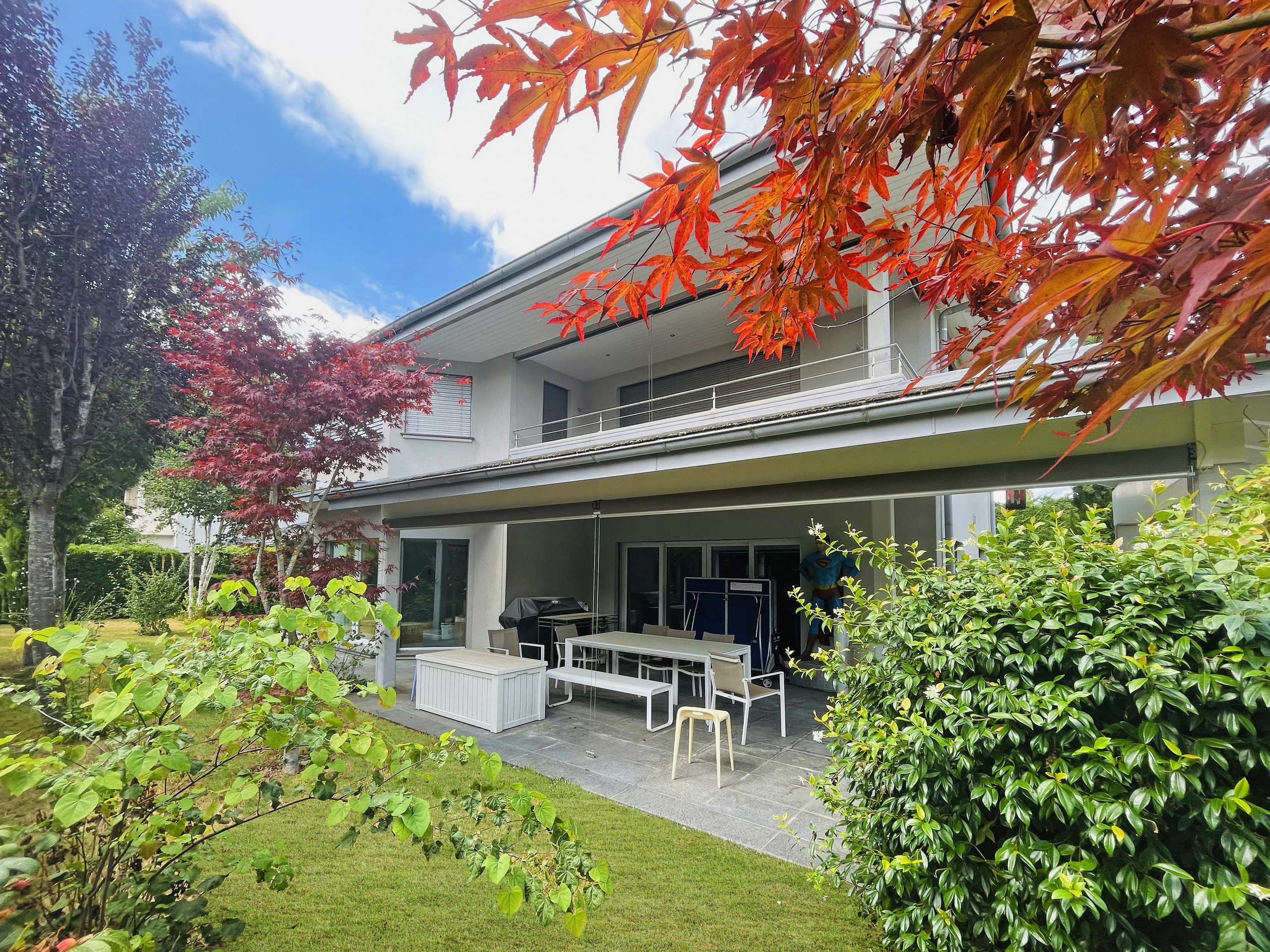 This beautiful, modern and functional family villa is ideally located in Mies, one of the Terre Sainte's most sought-after communities just a 2-minute walk from the center of Mies, its amenities, international schools, Geneva and its airport. Set on a lovely flat plot of 1,000m2, the property features a covered terrace and a pretty, sunny garden with mature trees. With its modern architecture, the villa offers some 280m2 of living space and 420m2 of usable space distributed over three levels. Carefully designed, this luminous villa features first-rate fixtures and fittings and quality materials. The first floor features a generous entrance hall with a large checkroom and visitor's toilet, a magnificent reception room with living/dining room and fireplace, and a fully equipped kitchen. A large office that could easily be converted into a bedroom completes this level. These rooms benefit from high ceilings and large bay windows,