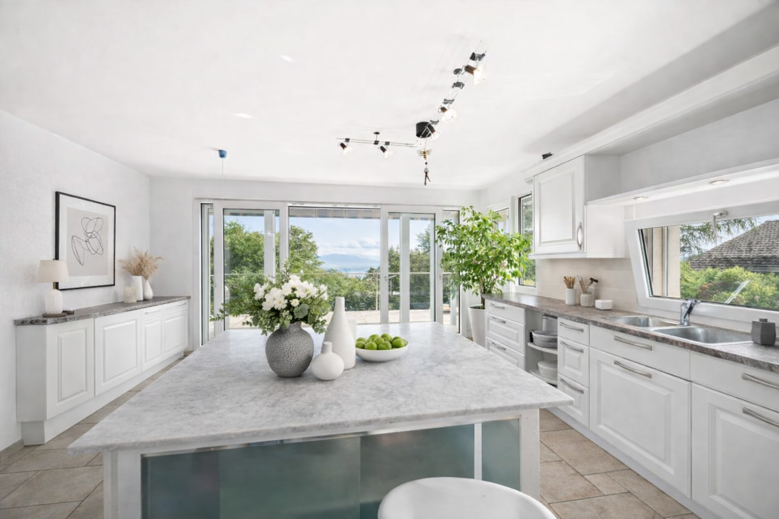 Located in the sought-after heights of Arzier-Le Muids, this elegant 320 sqm detached house combines family comfort, spaciousness and exceptional panoramic views. Set on a 1,169 sqm landscaped plot, it offers a privileged living environment between lake and mountains. As soon as you enter, you'll be seduced by the large, bright, south-east-facing living space, comprising a living room with fireplace, a convivial dining room and a fully equipped, open-plan kitchen with pantry. All open onto a panoramic terrace with breathtaking views of Lake Geneva and Mont Blanc. Two bedrooms, an office area and a bathroom complete this level. Upstairs, a superb master suite with bathroom, balcony and attic storage offers a warm, intimate atmosphere. The lower ground floor reveals an independent basement space ideal for welcoming family, guests or staff, comprising a living room, open kitchen, three bedrooms and three bathrooms, one with whirlpool bath. Exterior