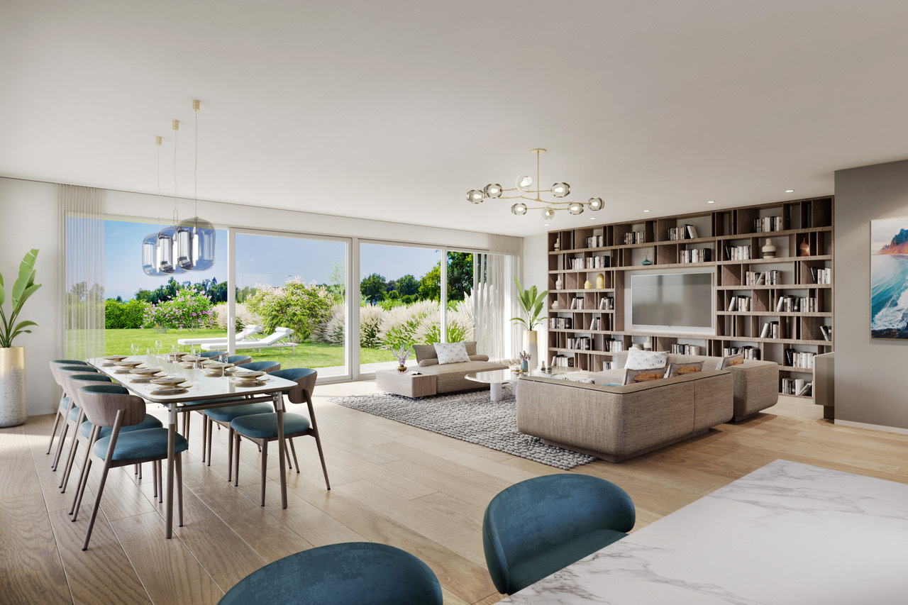 "Les Atoles" is an exclusive project of two high-end contemporary villas, ideally located in the highly sought-after town of Coppet, in the Terre Sainte region. In the immediate vicinity of Lake Geneva, the villas offer a rare living environment, combining serenity and convenience. The train station and the charming town of Coppet are within walking distance, while renowned international schools are just minutes away. These semi-detached villas are distinguished by their elegant architecture with clean lines, their large bay windows providing exceptional natural light, and their high-end amenities. Their location has been carefully designed to guarantee complete privacy for future residents. Minergie certified, they incorporate a geothermal heat pump with geocooling as well as photovoltaic panels. Each villa offers approximately 229 sqm of living space on a 675.5 sqm plot, with a flexible layout currently comprising four bedrooms, each with an en-suite bathroom. The basement