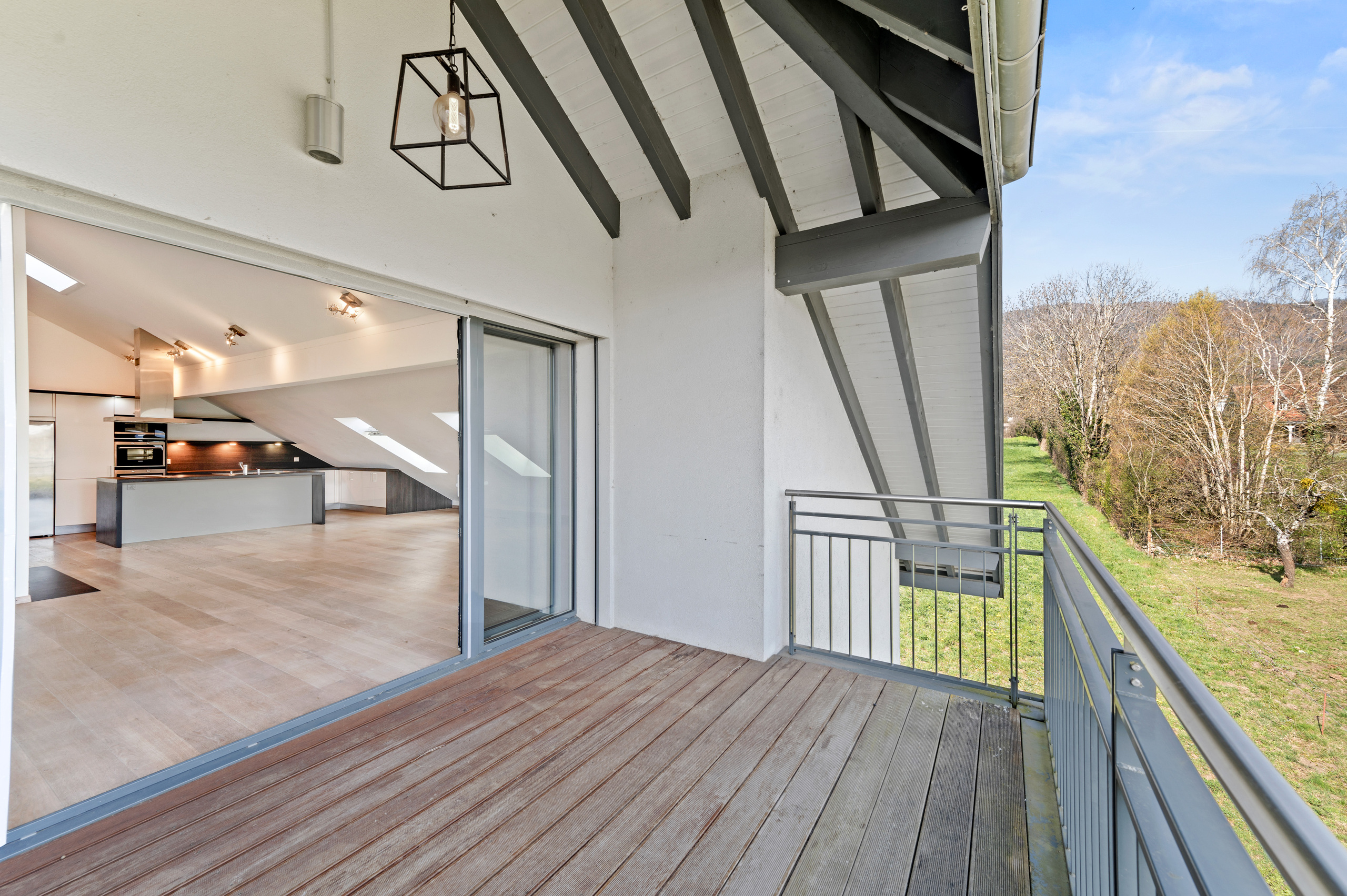 Discover this exceptional penthouse apartment with elevator access in a low-energy building in the heart of the charming village of Gingins. The village is located in the countryside and offers a peaceful, green living environment, yet is between Geneva and Lausanne, close to all amenities, shops, international schools and the freeway. This 5.5-room penthouse apartment is characterized by its generous volumes, enhanced by beautiful rooms and quality finishes. Each room is generously proportioned. Its perfect orientation gives it plenty of light, charm and a cosy atmosphere. Offering 163 sqm of living space, it features a vast, convivial living room and an attractive, fully-equipped, open-plan kitchen. The night space features a master suite with bathroom, as well as a children's area with 2 further bedrooms and a bathroom. This attic also includes a superb mezzanine that could be used as an office. An additional room provides space for