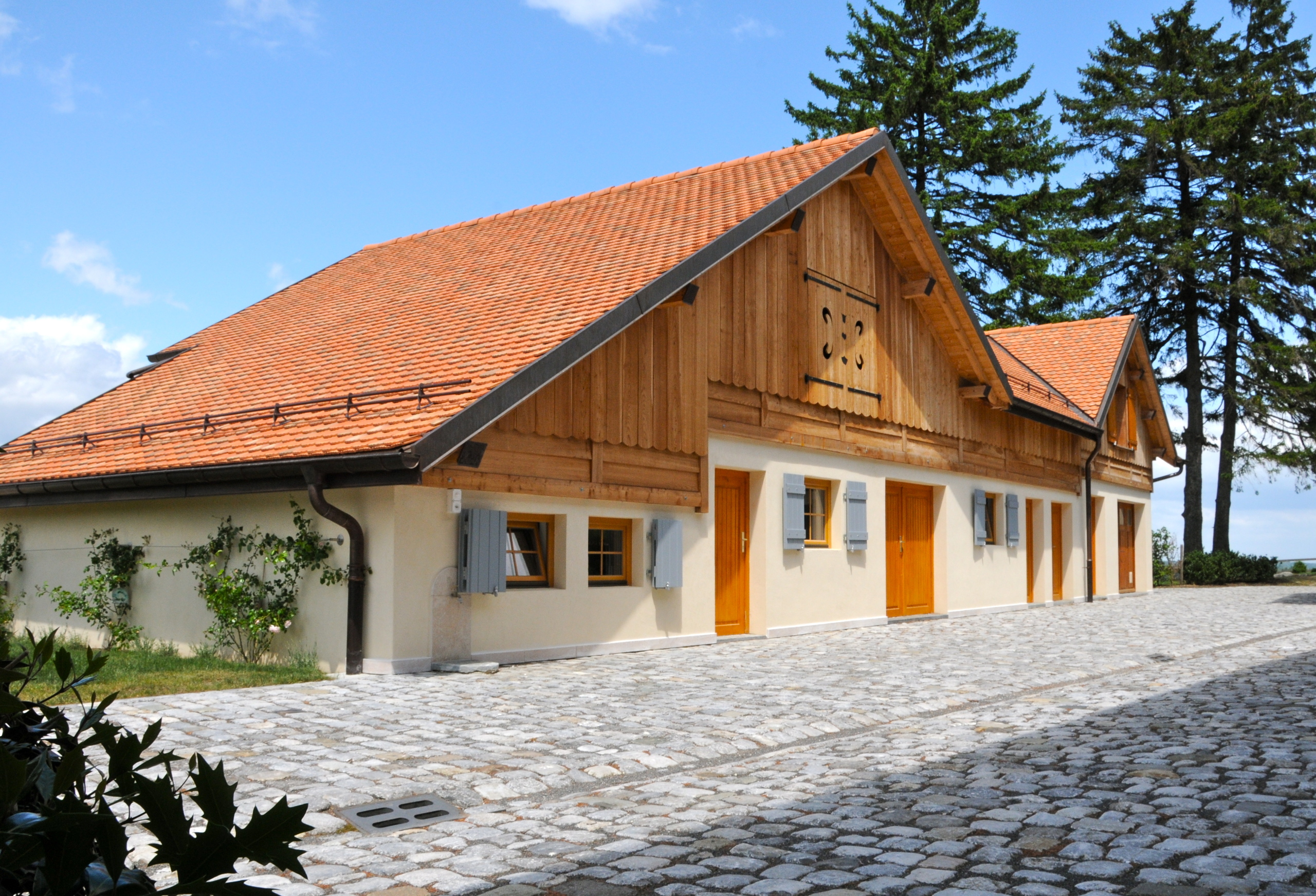 À l’extérieur, de nombreuses annexes enrichissent l’ensemble. Une seconde grange peut être transformée en salle de fitness, écurie pour poneys, rangements ou logement de personnel. Un autre bâtiment accueille des stalles pour chevaux, un local technique, un garage pour deux voitures ainsi que deux ateliers.