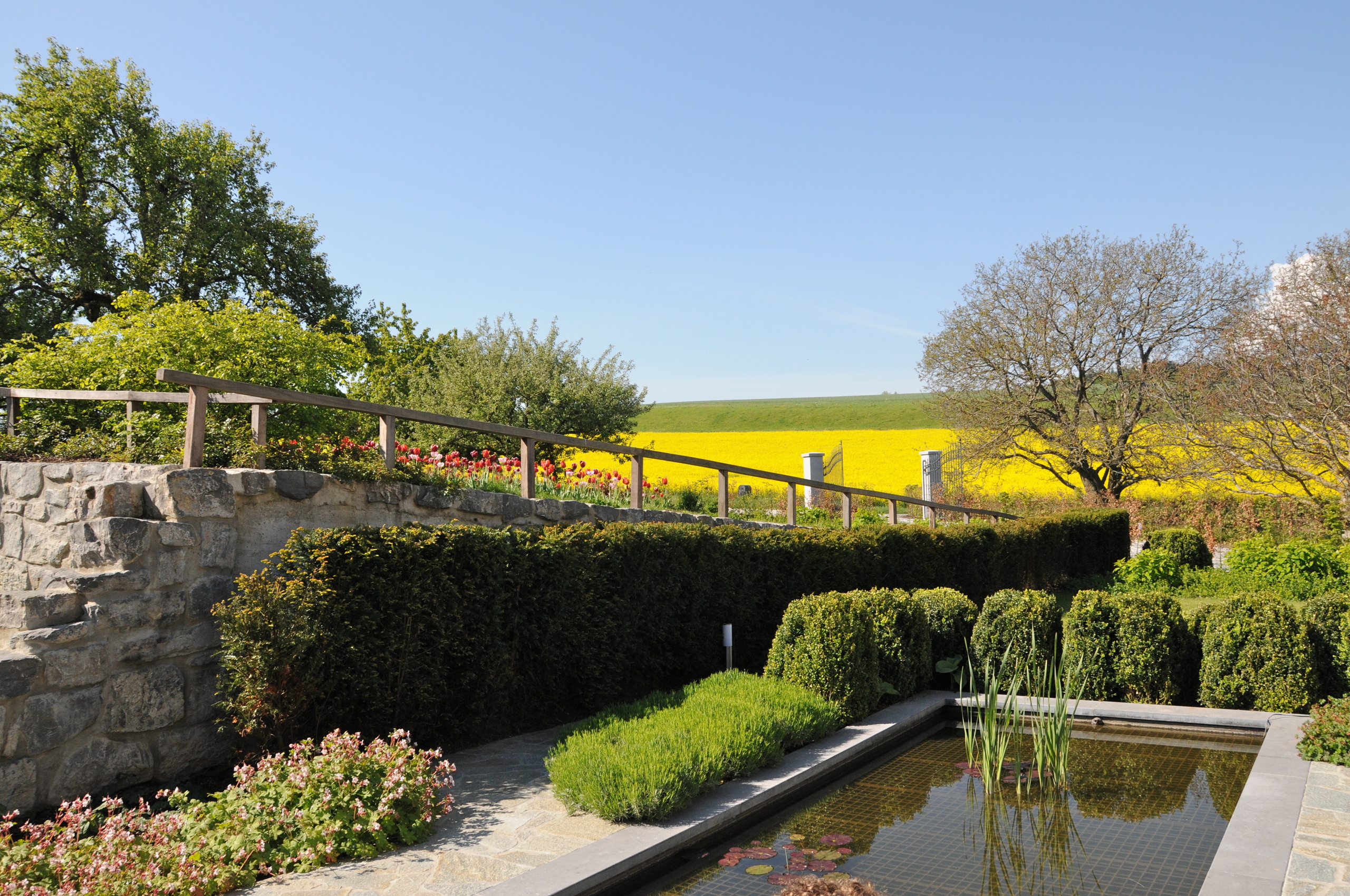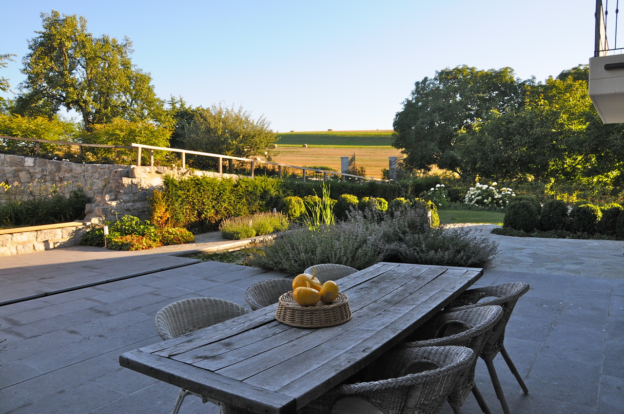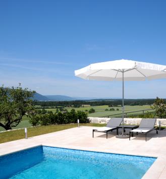 Le jardin potager, les arbres fruitiers, le pâturage permettant d’accueillir ânes ou chevaux et la splendide piscine en mosaïque complètent ce cadre enchanteur.