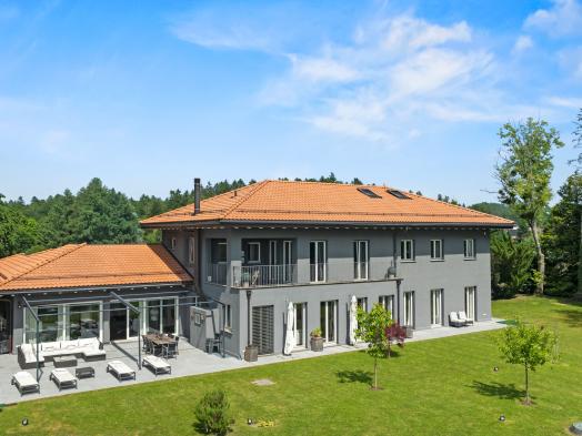 Cette superbe propriété est située dans un quartier résidentiel très calme de la commune de Epalinges, à proximité du prestigieux Golf Club de Lausanne. Elle profite d’une superbe vue sur le lac et offre un cadre de vie paisible dans un environnement sans nuisance à proximité immédiate de Lausanne et des écoles internationales. Edifiée en 1972 et entièrement rénovée en 2016, cette élégante propriété se caractérise par une luminosité omniprésente, des pièces aux volumes très généreux et des prestations haut-de-gamme. Elle offre une surface utile de 700 m2 organisée sur 2 niveaux plus un sous-sol et reçoit 5 belles chambres dont 4 en suite. La partie jour, largement ouverte sur l’extérieur, accueille de généreux espaces de réception en enfilade : un bureau, une salle à manger de réception, un vaste salon avec cheminée prolongé par un second salon avec bar, ouvert sur la piscine intérieure et