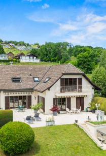 Dominant le bassin lémanique et située dans un écrin de verdure, cette propriété marie avec subtilité et charme l’architecture traditionnelle et des aménagements pensés pour une vie familiale paisible. Offrant une vue imprenable sur les Alpes et le lac, elle séduira les amateurs de sérénité et de panoramas d’exception. Venez découvrir cette superbe propriété d’une surface habitable d'environ 270 m² composée au rez-de-chaussée d'un vaste séjour lumineux, un sublime salon et son ambiance chaleureuse, une cuisine indépendante entièrement aménagée et équipée. Au 1er étage, deux chambres offrent confort et intimité, complétées par une salle de bains et un WC séparé ainsi qu'une master généreuse avec sa salle de bains attenante. Le sous-sol réserve : un studio indépendant, idéal pour des invités ou un espace professionnel, ainsi qu’une chaufferie, une cave, atelier, et un grand double garage. À l’extérieur, un terrain de 1326m2 et une grande terrasse