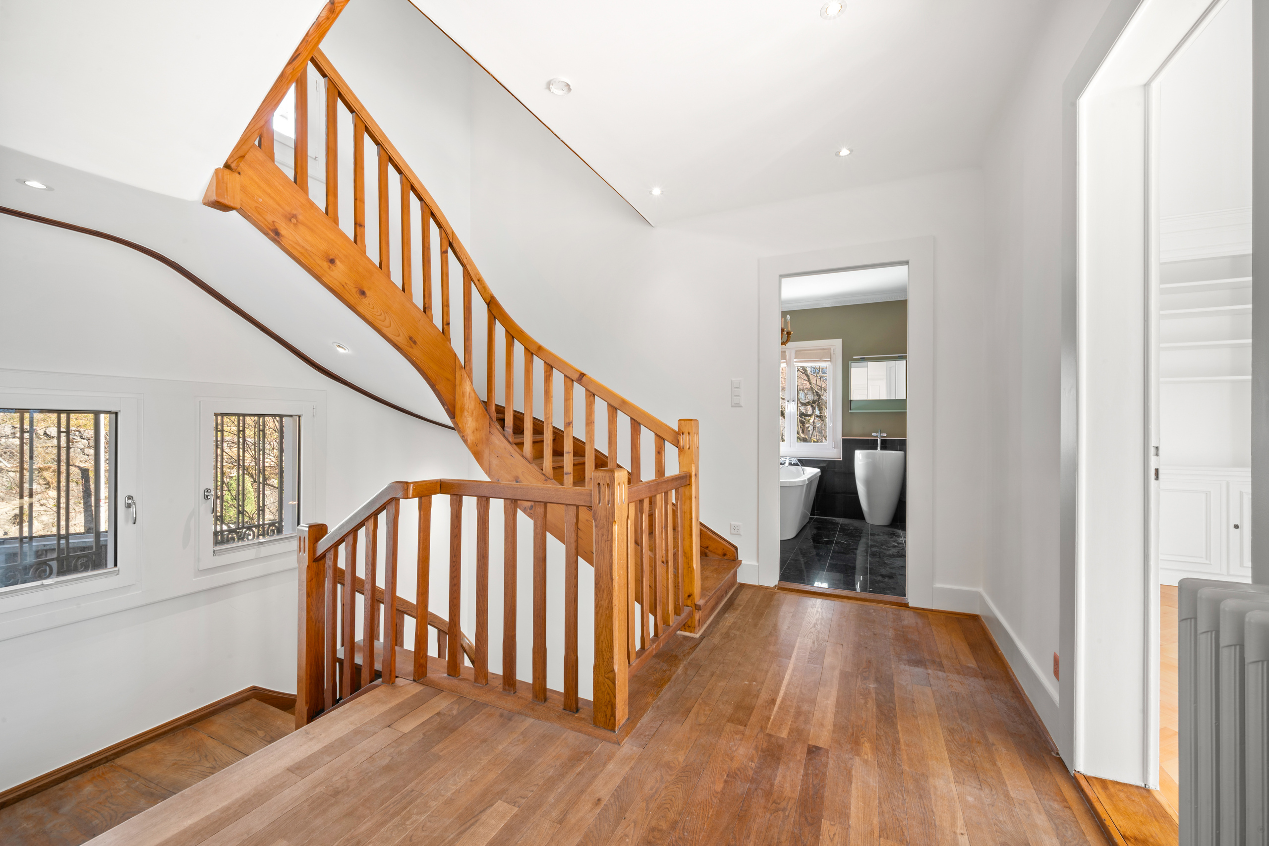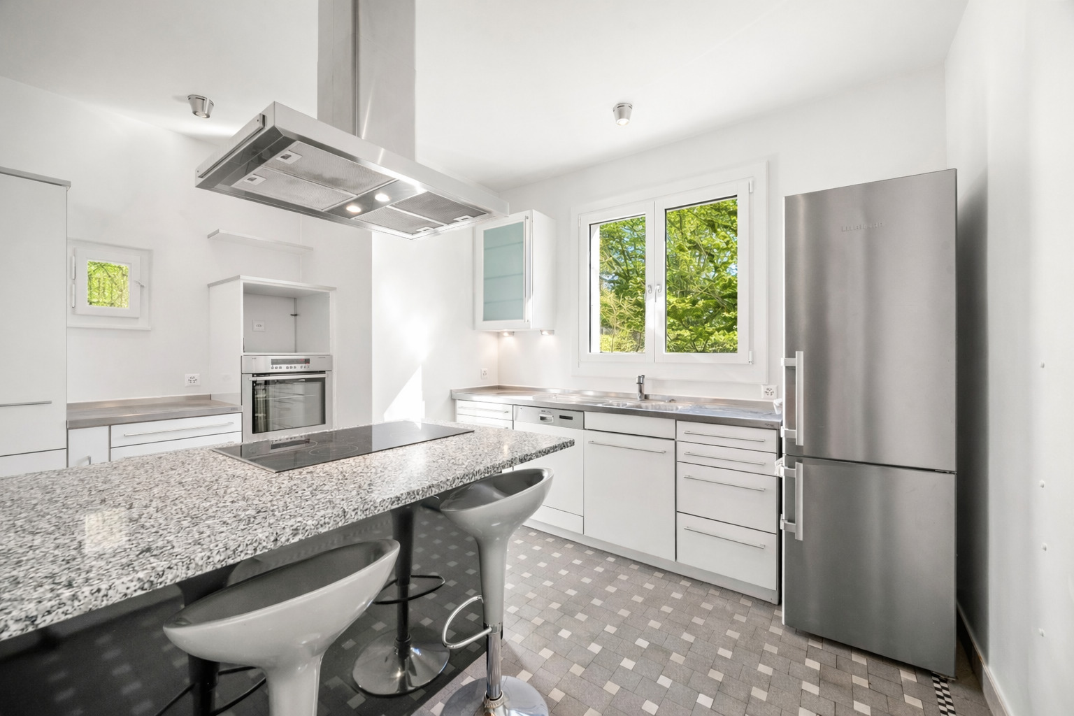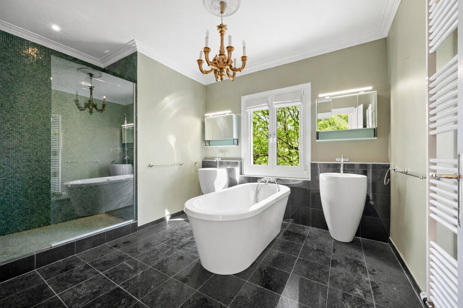 Située dans un quartier calme et résidentiel, cette élégante propriété datant de 1930, entièrement rénovée en 2025, est nichée dans un véritable écrin de verdure sur une magnifique parcelle de 954 m². Rénovée avec goût et des matériaux de grande qualité, elle séduit par ses beaux volumes, sa luminosité omniprésente et son confort moderne parfaitement intégré au charme de l’ancien. La maison a su préserver ses superbes parquets d’origine ainsi que ses belles hauteurs sous plafond, lui conférant une atmosphère chaleureuse et raffinée. Idéalement située à proximité des commerces, des transports et des écoles internationales, elle conviendra parfaitement à une famille à la recherche d’un bien pratique et clé en main. La propriété d'environ 280 m2 utiles offre : 4 chambres à coucher et 3 salles de bains De spacieux espaces de réception Une cuisine entièrement aménagée Un vaste sous-sol comprenant plusieurs pièces