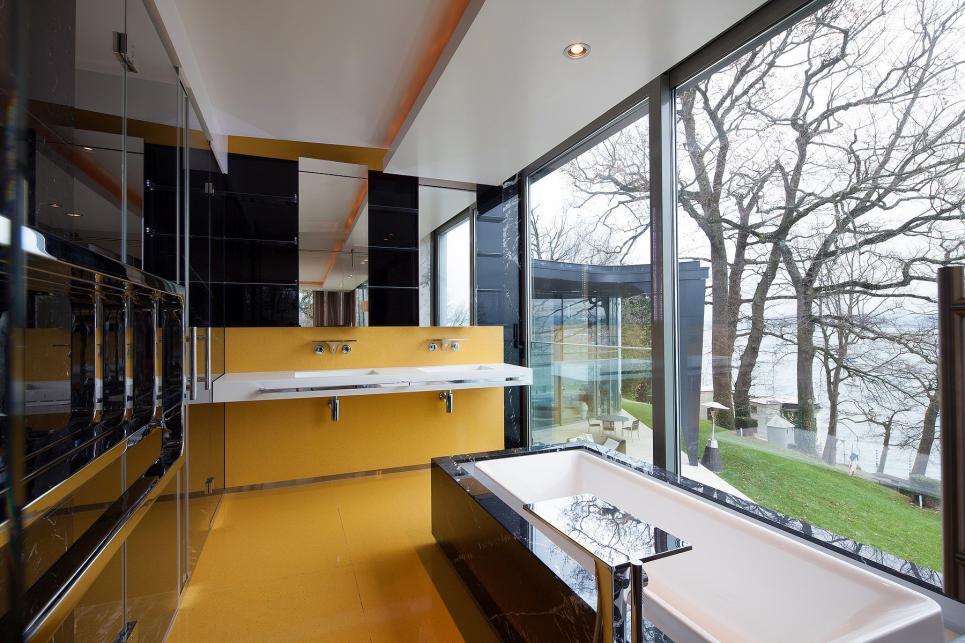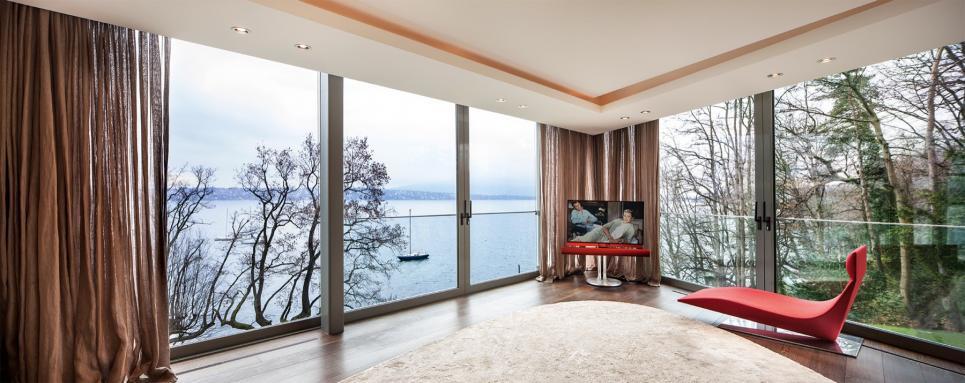 ainsi que de deux chambres, chacune avec sa salle de bain ensuite et son dressing. Toutes ces pièces offrent une vue imprenable sur le lac.