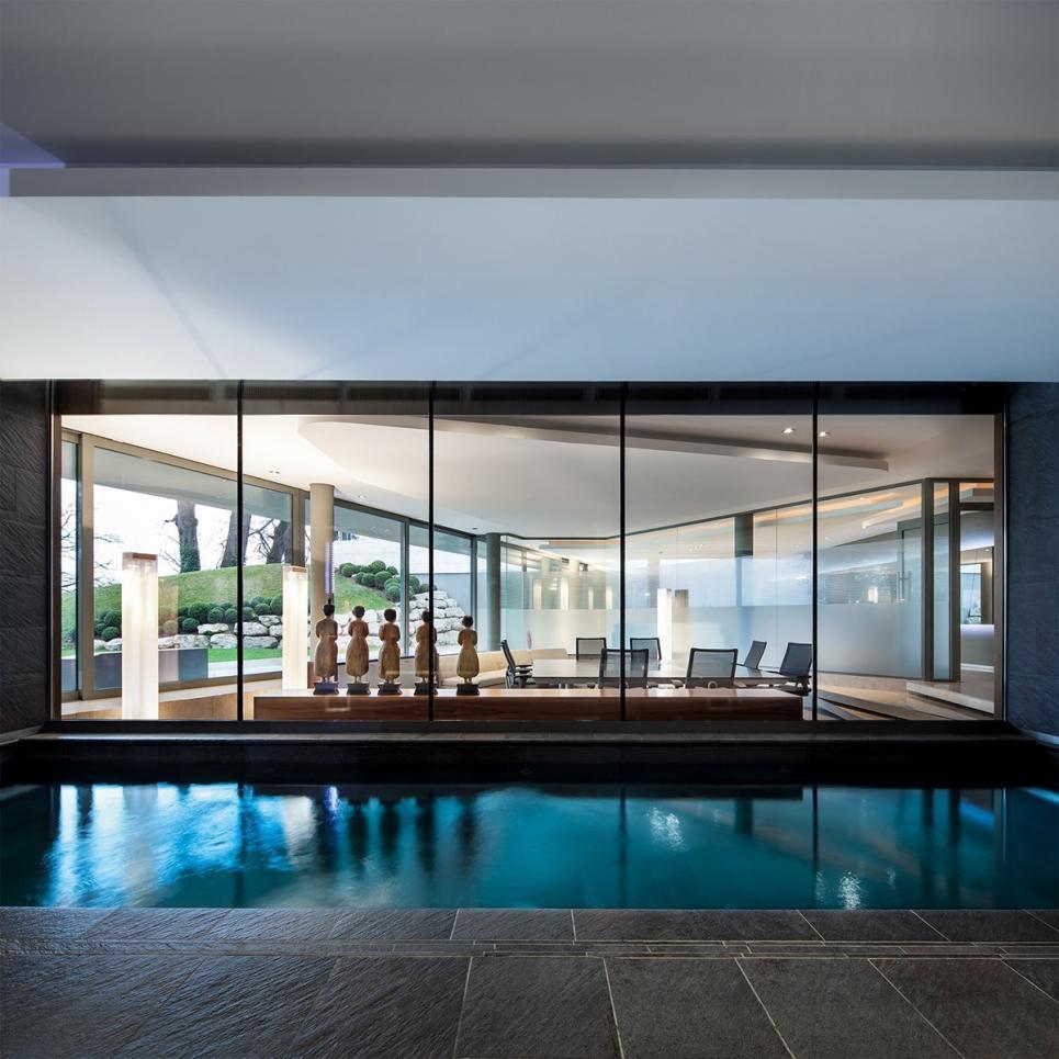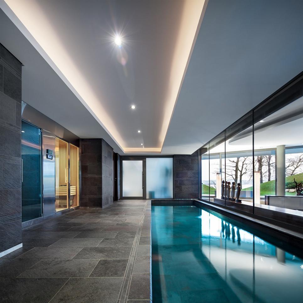 A l’extérieur, un superbe parc de 6’000m2 , avec piscine et terrasses, offre d’agréables espaces de détente supplémentaires , qui donnent directement sur les rives du lac.