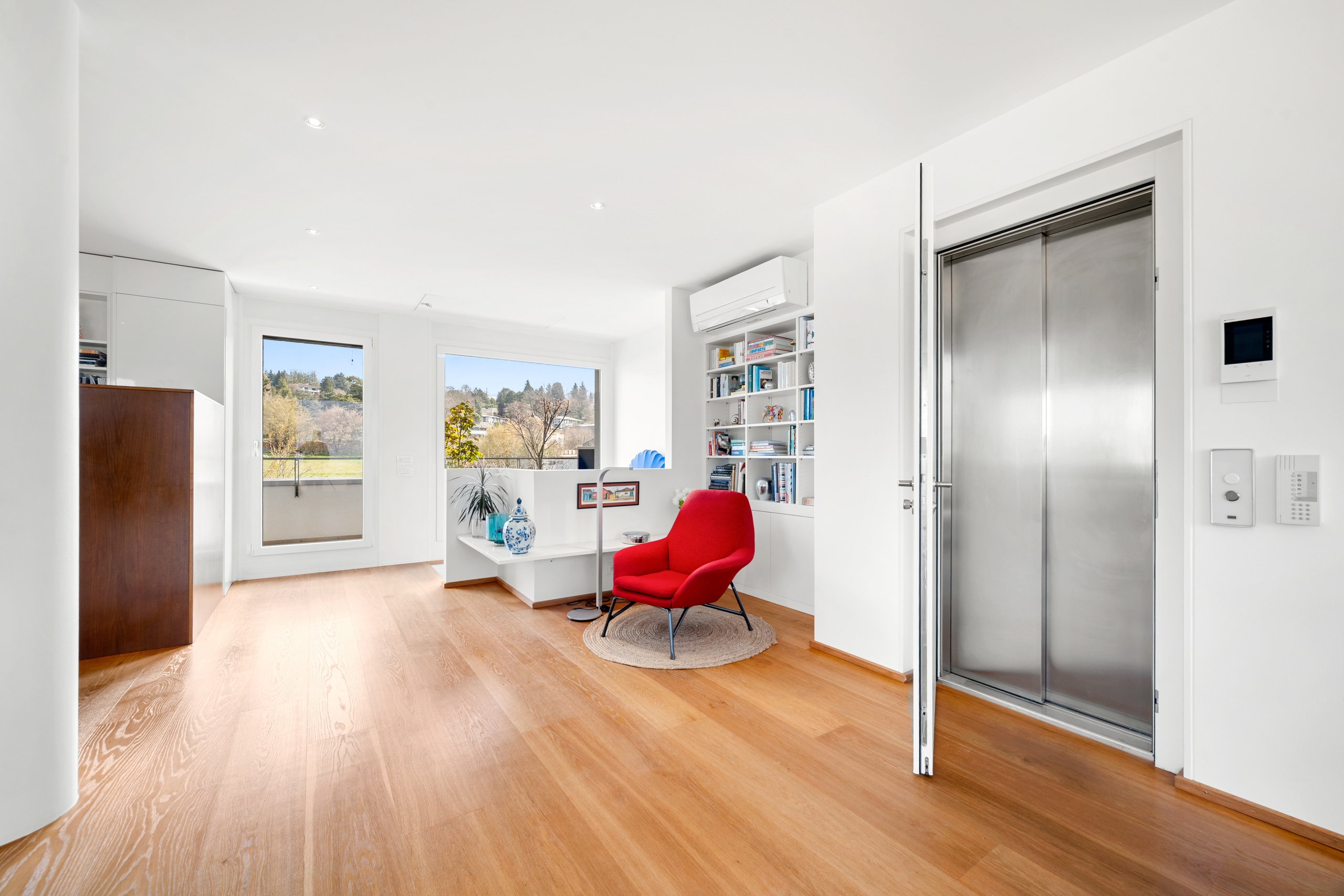Ce superbe appartement en duplex contemporain, construit en 2011 et régulièrement entretenu, se situe dans le quartier très recherché de Chailly, à proximité immédiate de toutes les commodités, des transports et des activités. Implanté au sein d’une PPE moderne composée de seulement huit appartements, répartis en deux bâtiments de quatre logements, il offre des prestations haut de gamme dans un environnement à la fois calme et verdoyant. Les volumes y sont généreux et la lumière omniprésente grâce à une distribution intérieure particulièrement soignée, où chaque pièce profite d’une belle vue sur la nature, le lac et les Alpes. Ce bien séduit également par son esprit « town house », avec une entrée indépendante depuis l’extérieur, ainsi que par son ascenseur privatif reliant directement le garage à chacun des niveaux de l’appartement. D’une surface de 200 m² habitables (240 m² pondérés), il s’organise sur deux niveaux. Le rez
