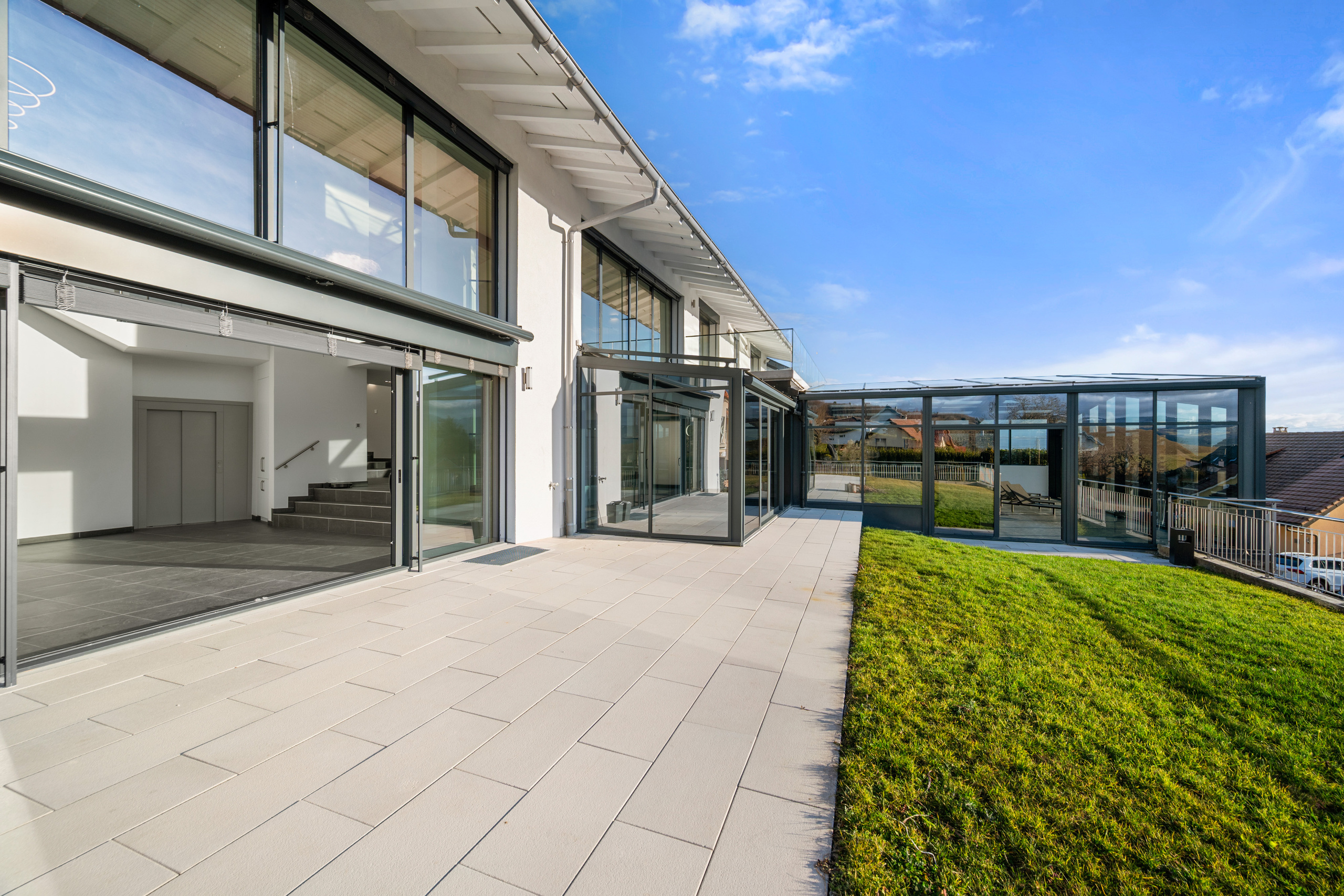 Villa d’exception de 8,5 pièces avec vue lac et Alpes, garage pour 9 voitures Implantée dans la très recherchée commune de Villars-Sainte-Croix, cette villa contemporaine remarquable offre environ 550 m² de surface habitable et près de 800 m² de surface utile. Son architecture soignée, ses volumes impressionnants et sa vue panoramique sur le lac Léman et les Alpes en font un bien véritablement unique sur le marché. Achevée en 2024, la propriété séduit par ses vastes baies vitrées, sa luminosité exceptionnelle et ses généreux espaces de vie. Le rez-de-chaussée accueille un grand salon avec salle à manger et cuisine ouverte, prolongé par un jardin d’hiver ainsi qu’une superbe piscine intérieure entièrement vitrée. Une chambre et une salle de bains complètent ce niveau. La villa compte cinq chambres, dont plusieurs configurées en suites avec salle de bains et dressing privatifs. La suite parentale bénéficie d’une terrasse offrant une vue imprenable sur les montagnes et le lac. Les demi-niveaux apportent une dynamique architecturale moderne, rappelant les plus belles réalisations contemporaines. Directement